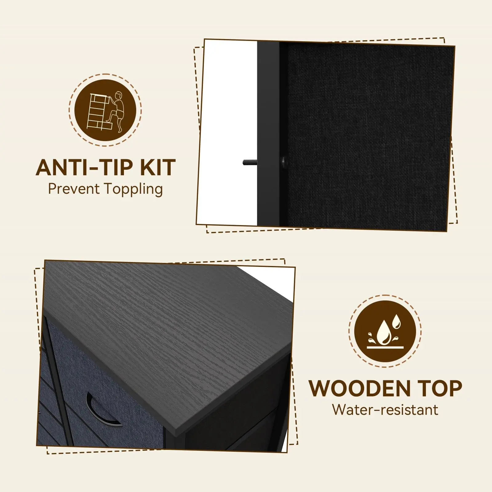 · Strong and Reliable Support: With its robust construction of a solid steel frame and tough wooden surface, this fabric dresser offers stability for all your items. It's perfect for anyone looking for long-lasting quality in their storage solutions.