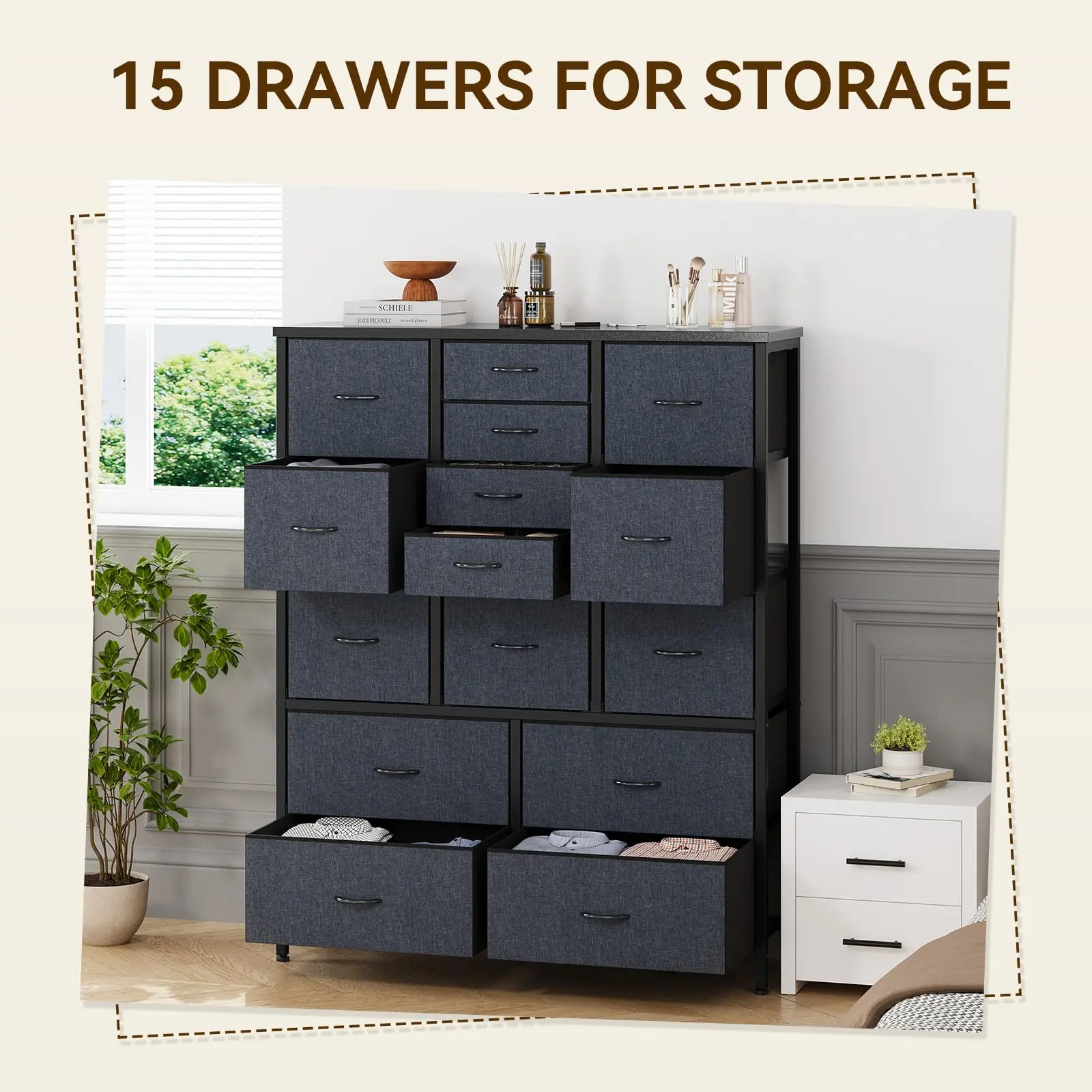 · Stylish Organization: Tired of messy rooms? Our dressing for bedroom features 15 stylish fabric drawers that not only look great but also store everything from scarves to socks. Enjoy a tidy space that enhances your bedroom's decor while meeting all your storage needs.