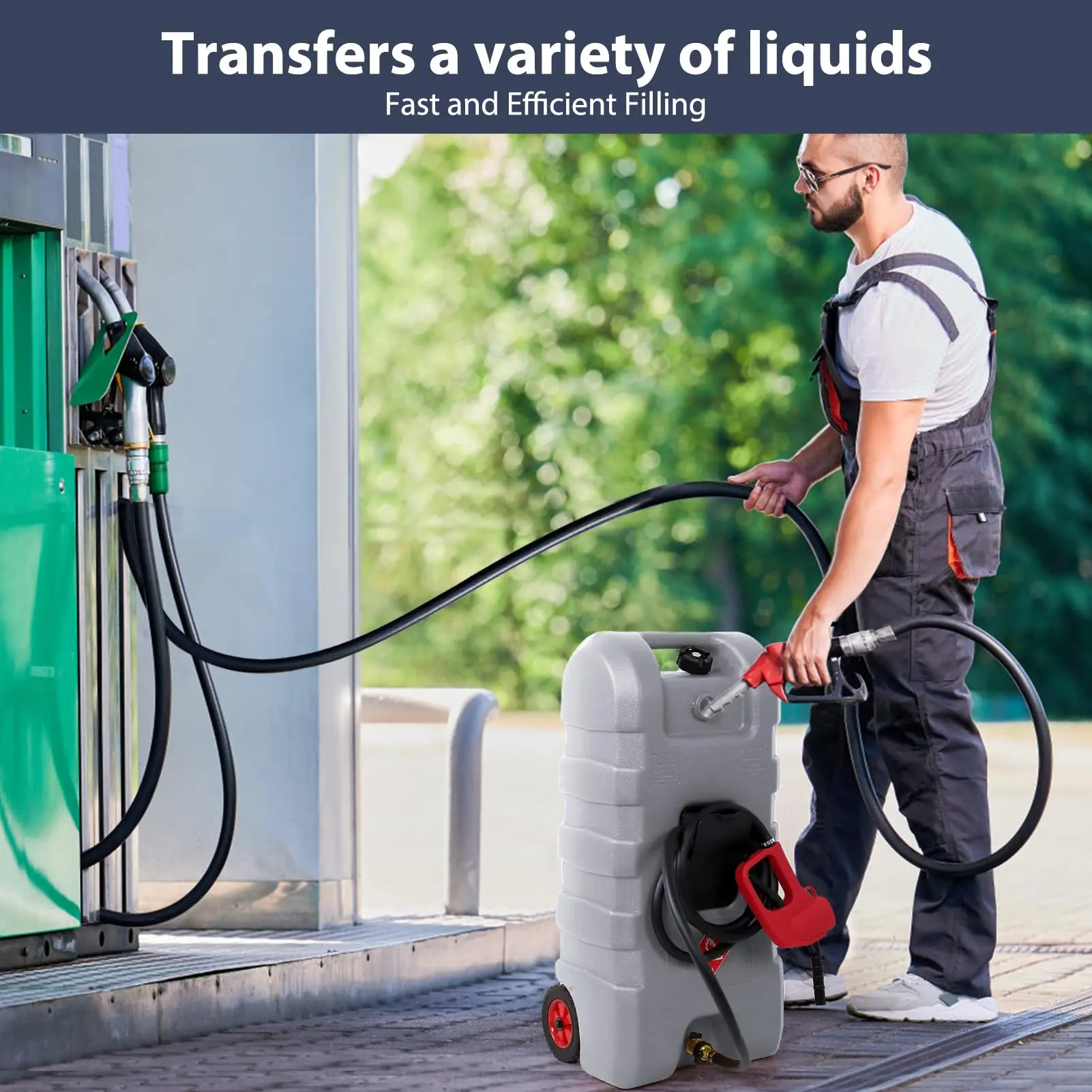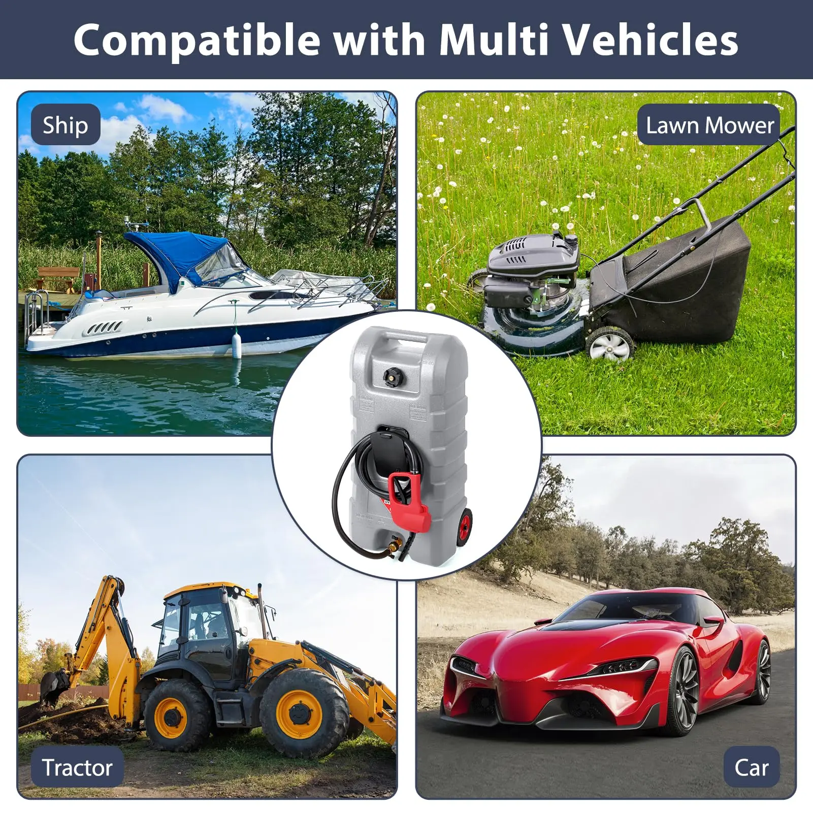 · 【Multi-Use Fuel Container】 Compatible with cars, lawnmowers, boats, ATVs, generators, and snowblowers, this portable gas tank on wheels is your all-in-one refueling solution for outdoor jobs, boating, camping, or emergencies.