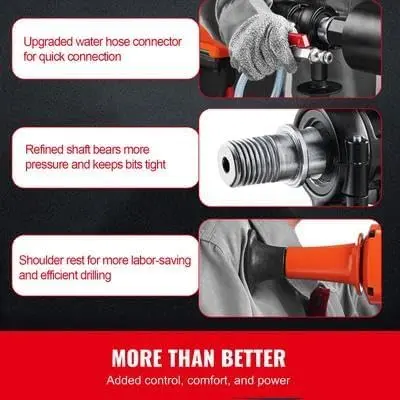 · Space-Saving & Easy-to-Handle Configuration: This lightweight diamond core drilling machine is designed for easy maneuverability in tight spaces; ideal for drilling through reinforced concrete, red brick, and marble without compromising performance or control