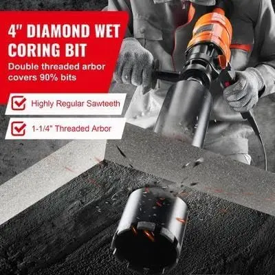 · Multi-Compatible Drill Bit Design: Comes with a 2-inch industrial-grade drill bit and a standard 1-1/4"-7 UNC threaded arbor; compatible with bits up to 4 inches, perfect for seamless drilling through concrete, brick, and stone for various projects