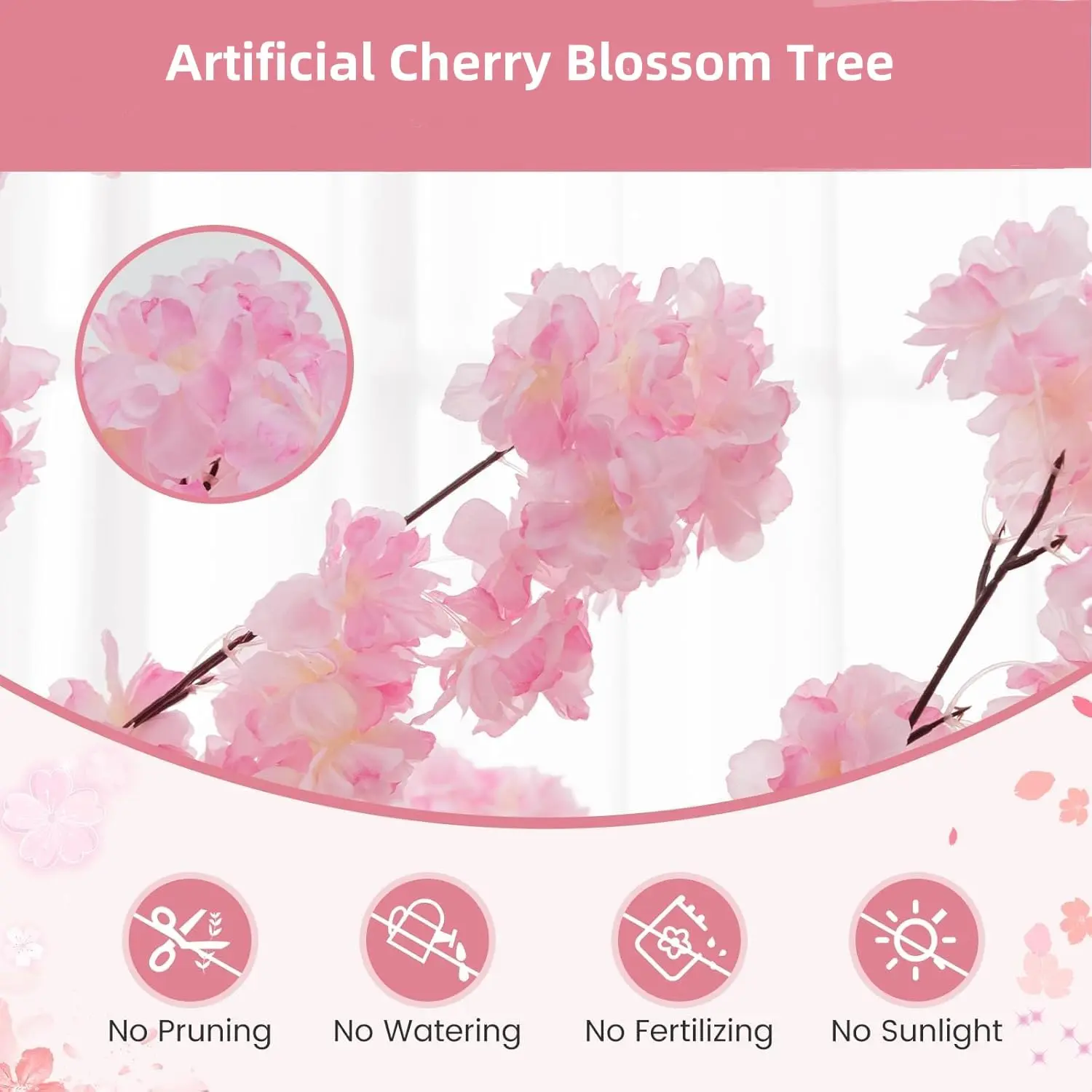 · 【Gorgeous & Vivid Appearance】This artificial tree is adorned with delicate pink cherry blossoms, which could infuse romance and charm into your living space. Additionally, it adopts simulated PE trunks, which could further enhance the natural look.