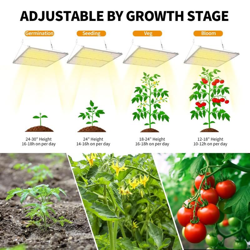 · Smooth Dimmable Control: Features both a dimmer knob and RJ port for flexible brightness adjustment. Easily fine-tune light intensity from low to high levels to match seedling, vegetative, and flowering needs—no extra controller required.