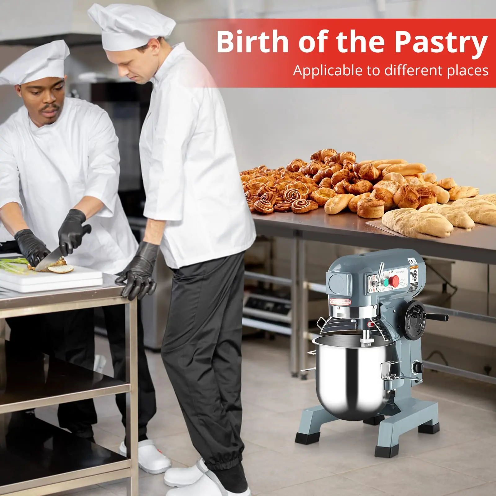 Commercial Bowl-Lift Design, Adjust the height of the bowl at will, so that the mixer can better contact with the food.