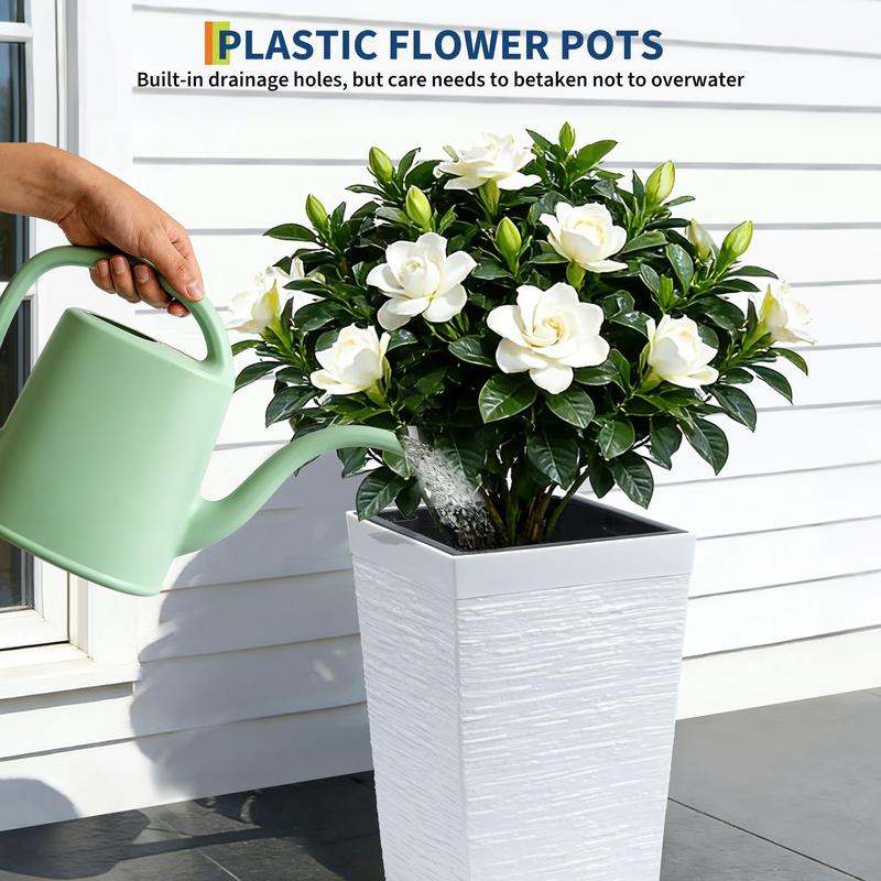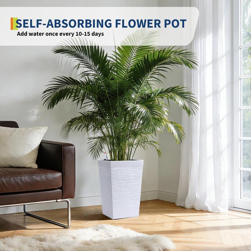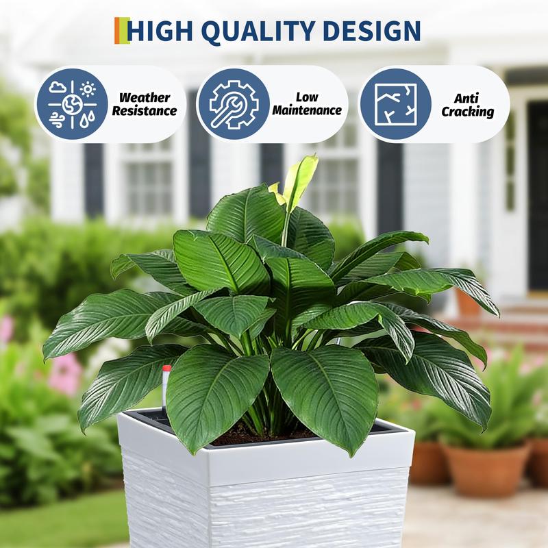 · Automatic Watering System: Each tall planters for outdoor plants features a built-in drain hole and water trough, ensuring your plants absorb water smoothly and minimizing root rot. The automatic watering system activates automatically when the water level is low, easily providing your plants with the necessary moisture