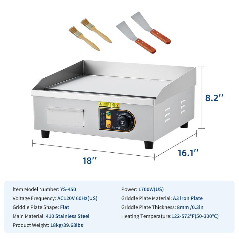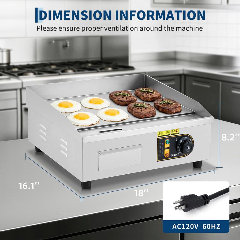 · Versatile Use - Multi-Functional Electric Griddle: Suitable for restaurants, roadside stands, cafes and home kitchens. This commercial flat top grill excels at making pancakes, bacon, steaks, burgers and more, meeting both high-volume commercial demands and family cooking needs.