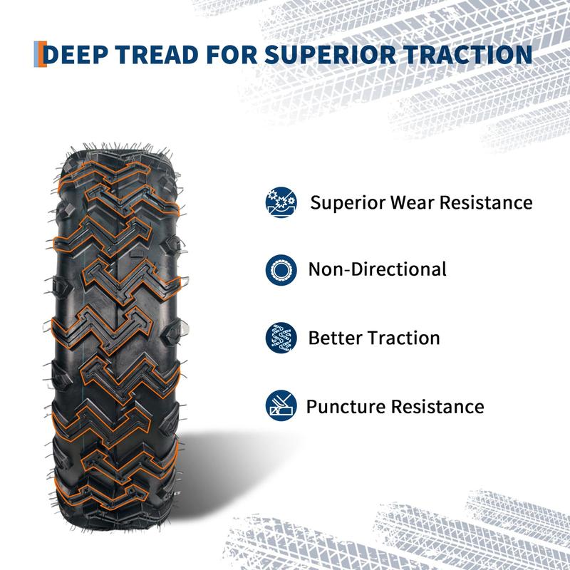 · Non-directional Tread Pattern: These atv tires feature deep, widely spaced lugs that excel at shedding mud and performing across diverse terrain. The open tread pattern also makes them much easier to clean after use.