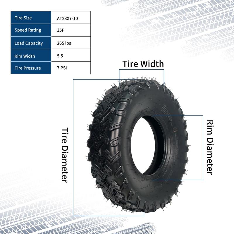 · Tire Parameters: max load:265 lbs; Rim Diameter: 10;Rim Width: 5.5;speed index:35F