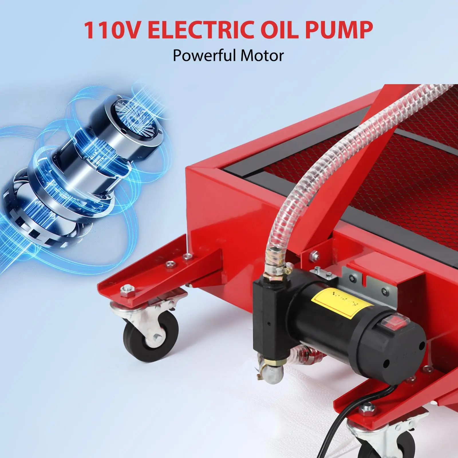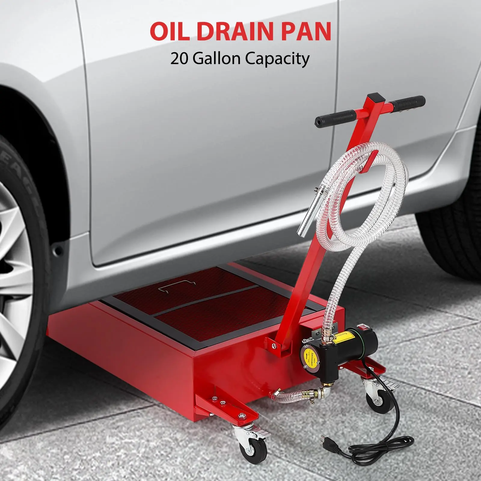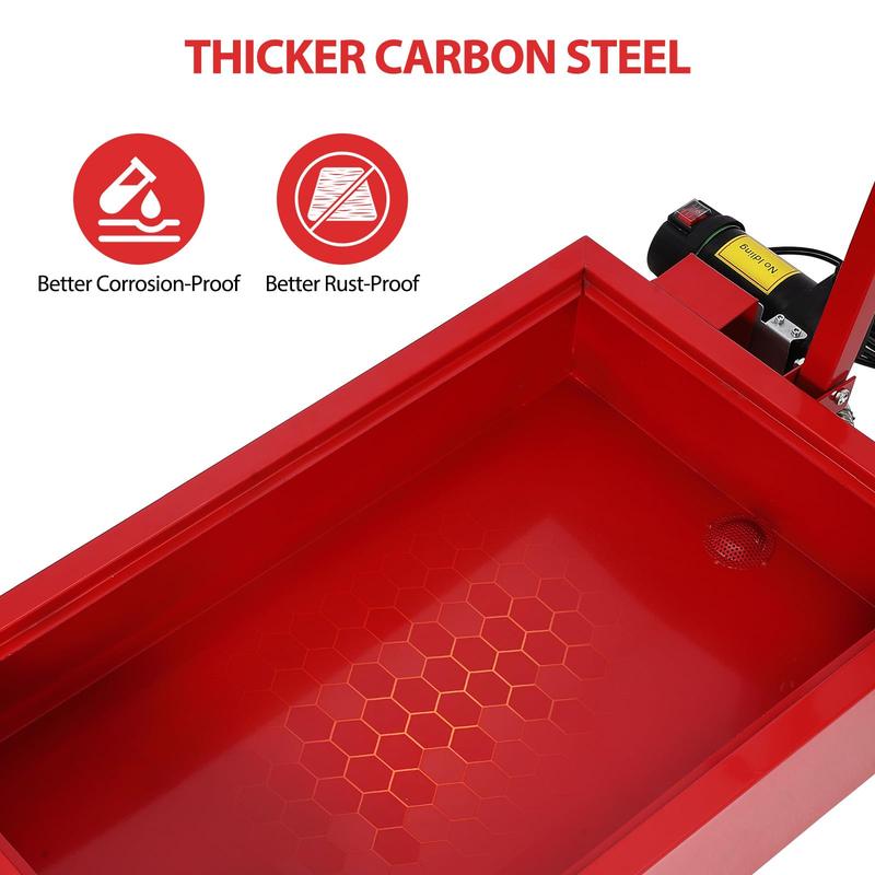 · OIL DRAIN WITH ELECTRIC PUMP: This oil drain pan is practical and efficient, and the 110v electric pump quickly drains oil, coolant, and other fluids, thus reducing the time and effort required for each oil change. We also thoughtfully provide a 7.5-foot drain hose for easy draining.
