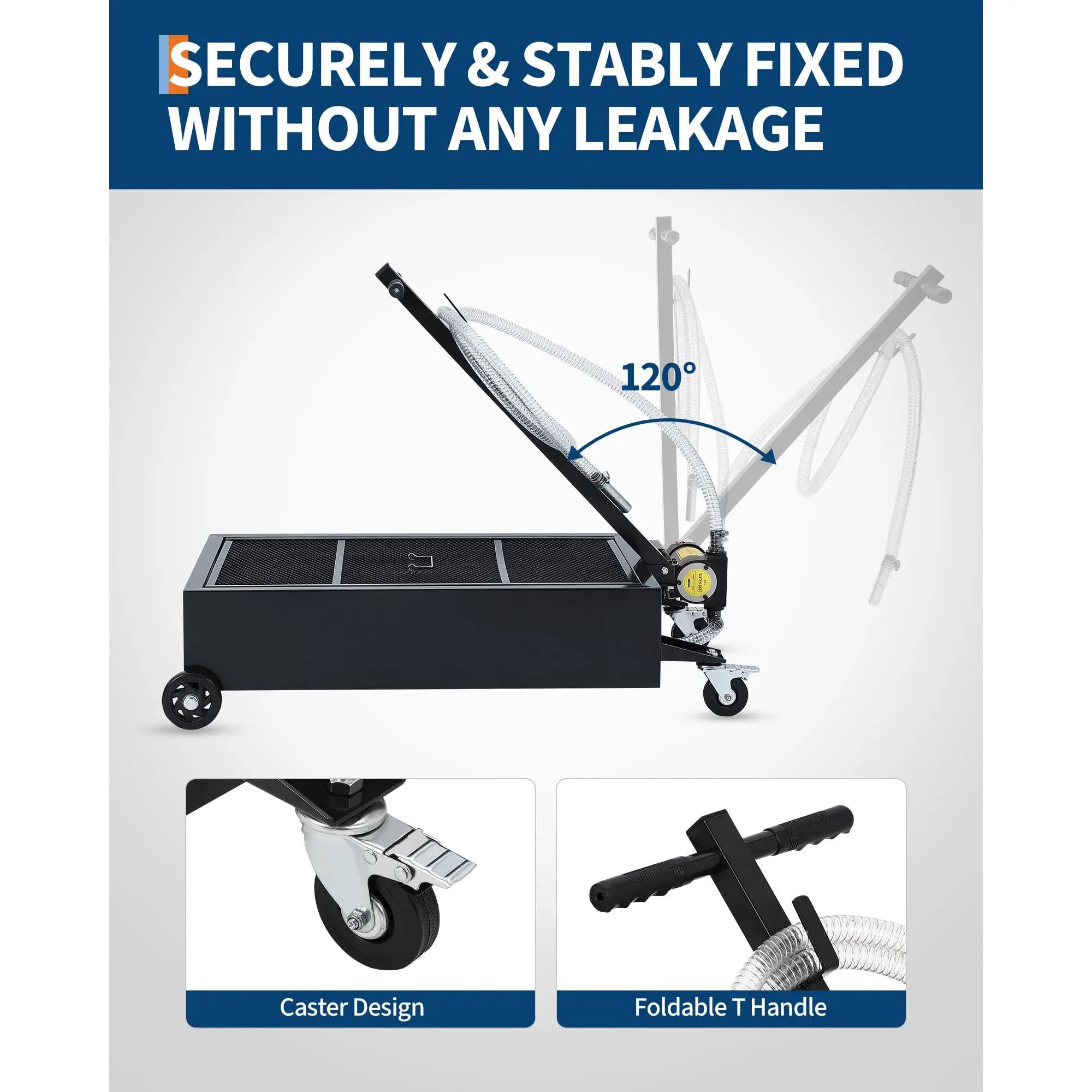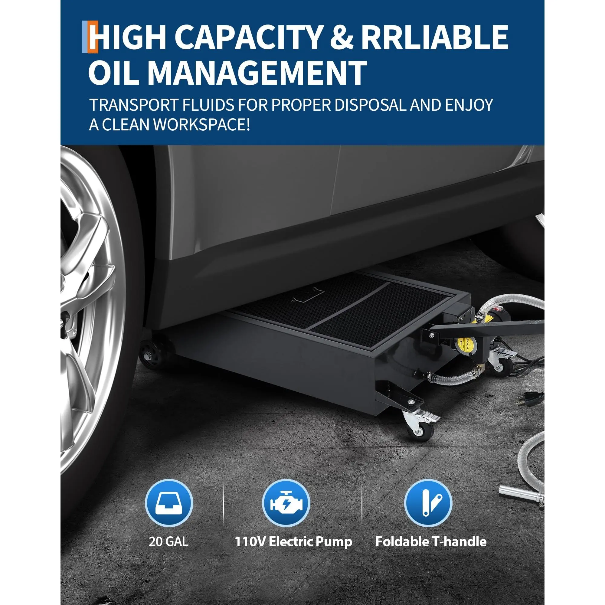 · 【20-Gallon High-Capacity Fluid Management】Designed for efficiency, our iron-framed oil drain pan features a 20-gallon reservoir, perfect for collecting used oil, coolant, and transmission fluid. Maintain a clean, organized workspace with minimal downtime.