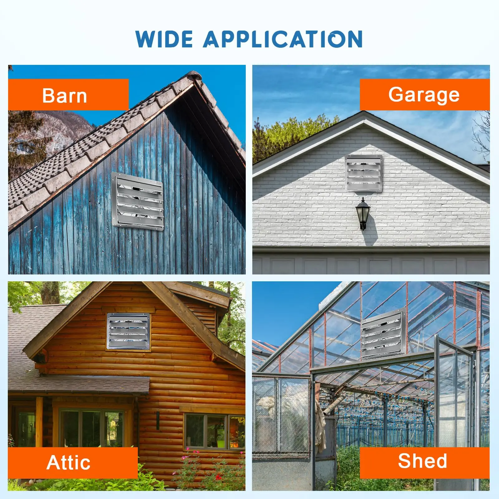 · Built to Last: Constructed with high-grade aluminum blades, the durable 24 in exhaust fan resists humidity and high temperatures, ensuring reliable performance and preventing corrosive rust, making it perfect for garage use