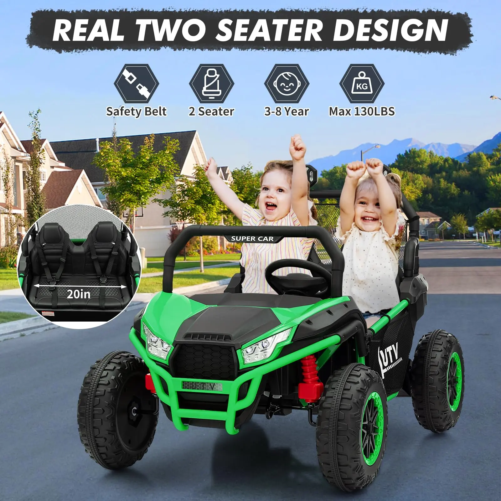 GARVEE 24V 2-Seater Ride On UTV with Remote Control, Spring Suspensions, 2 Speeds, LED Lights, Bluetooth, and Treaded Tires in Green - Durable and Fun Outdoor Vehicle