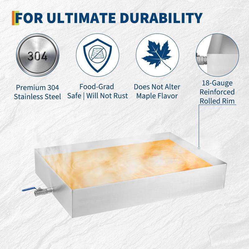 · Spacious Family-Size Design: This maple syrup evaporator pan features a spacious 24"x36"x6" design with a 22.4-gallon capacity, perfect for backyard maple syrup evaporator projects. Easily boil more sap at once for efficient, enjoyable syrup making at home