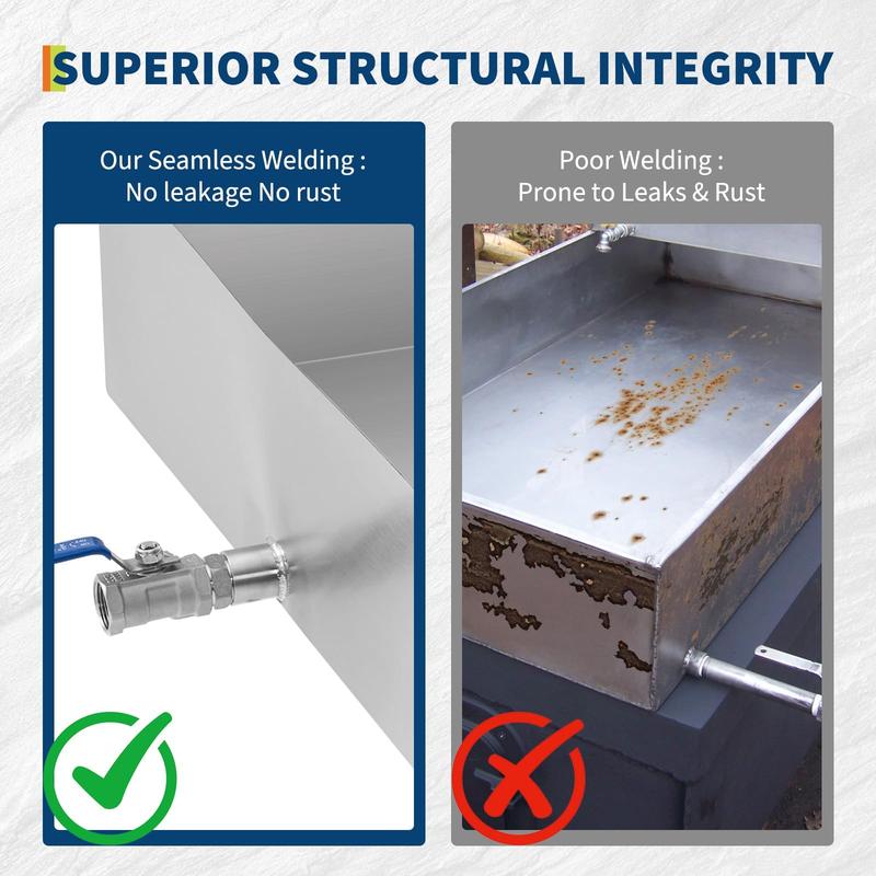 · Corrosion Resistance & Durability: 304 stainless steel resists rust, oxidation, and corrosion even in high heat and humidity. Its sturdy, impact-resistant build prevents warping or damage, so your evaporator pan stands up to heavy use and large batches every season