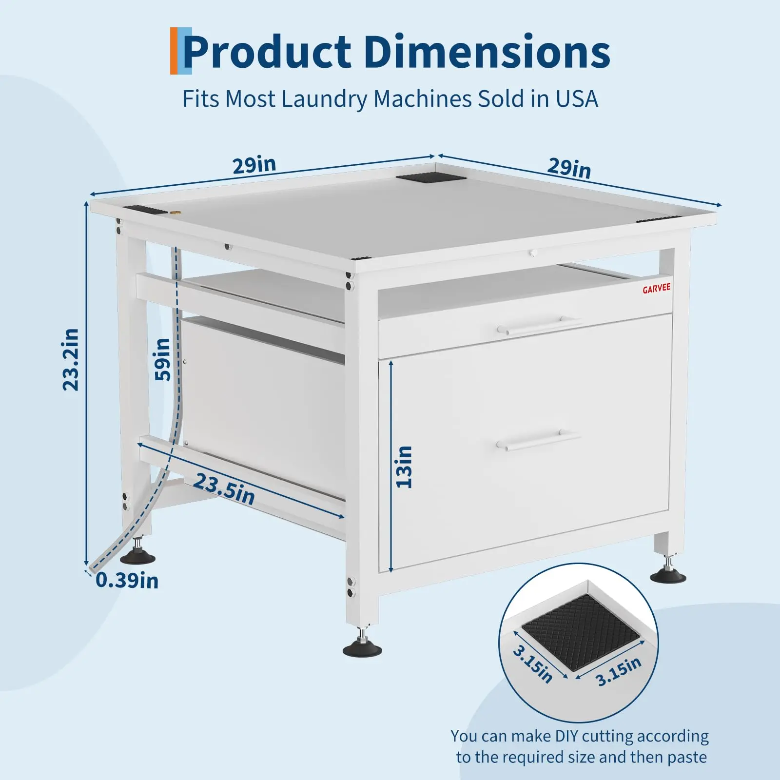 · Universal Design Metal Dryer Pedestal: This washer and dryer pedestals measures 29" D x 29" W x 23" H, compatible with most washing machines and dryers on the market to meet diverse needs. You can choose the quantity of your order to allow you to place the washing machine, dryer and other appliances of the appropriate size at the same time.