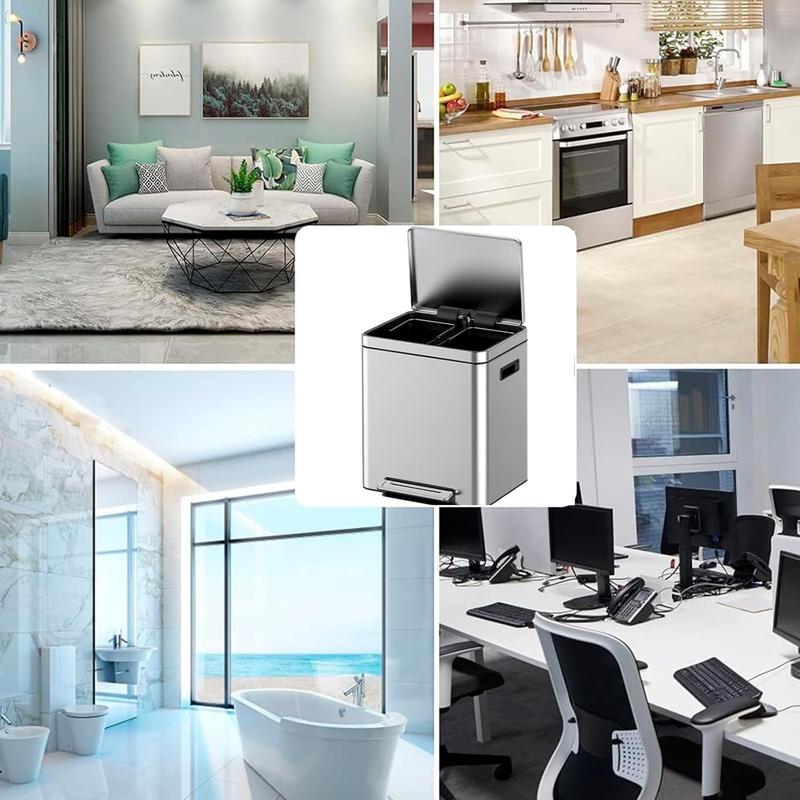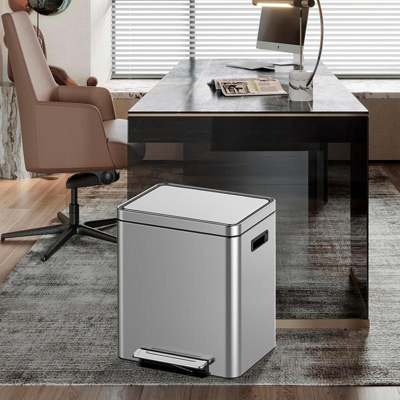 · Dual Compartments: Featuring two 4.75-gallon (18-liter) inner barrels, this trash can efficiently separates dry and wet waste or recyclables and non-recyclables, simplifying your sorting and disposal process.
