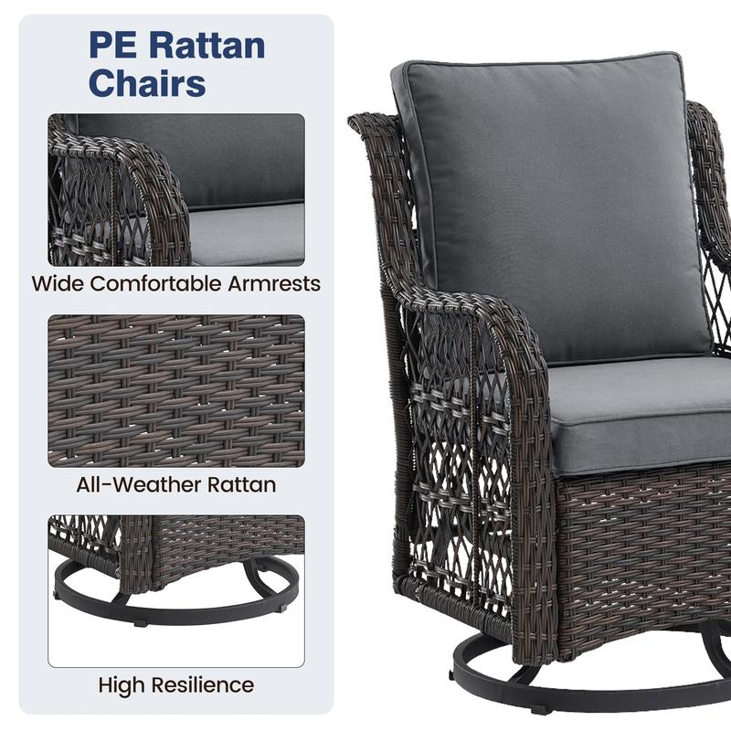· - Swivel & Rocking Chairs: This upholstered chair can rotate 360 degrees and glide back and forth, enhancing relaxation and allowing you to take part in conversations or enjoy your surroundings without having to get up