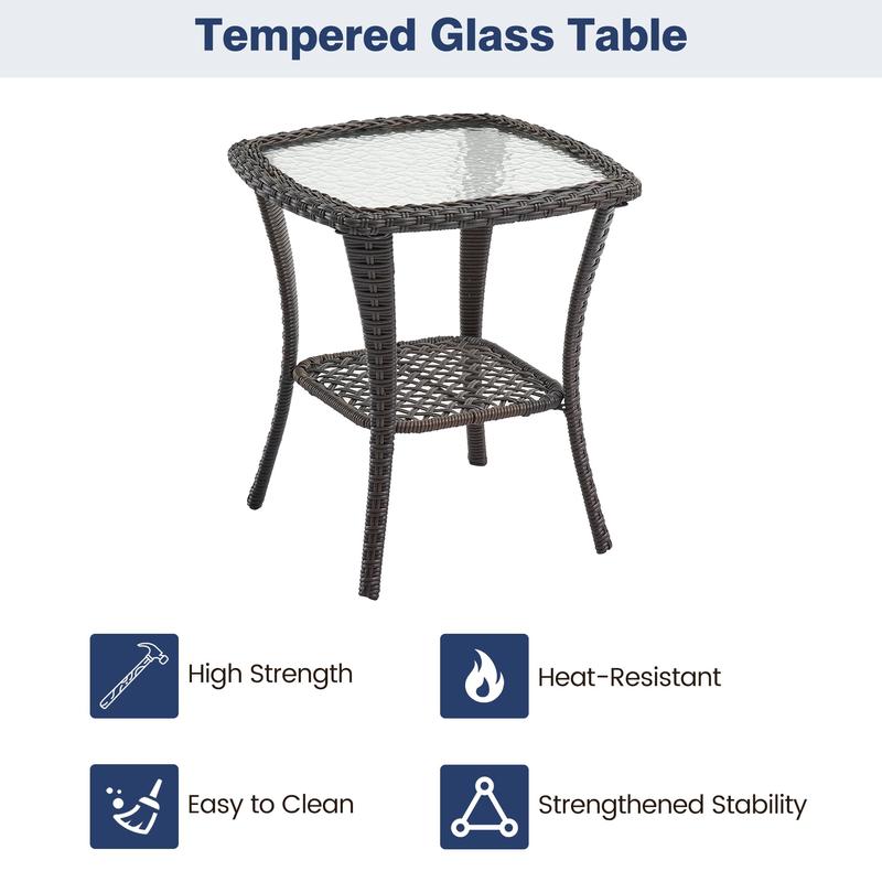 · - Sturdy Construction: Built with a robust iron frame and premium PE rattan, the table supports up to 50 lbs, and each chair can hold up to 200 lbs, ensuring worry-free use without concerns of breakage or collapse