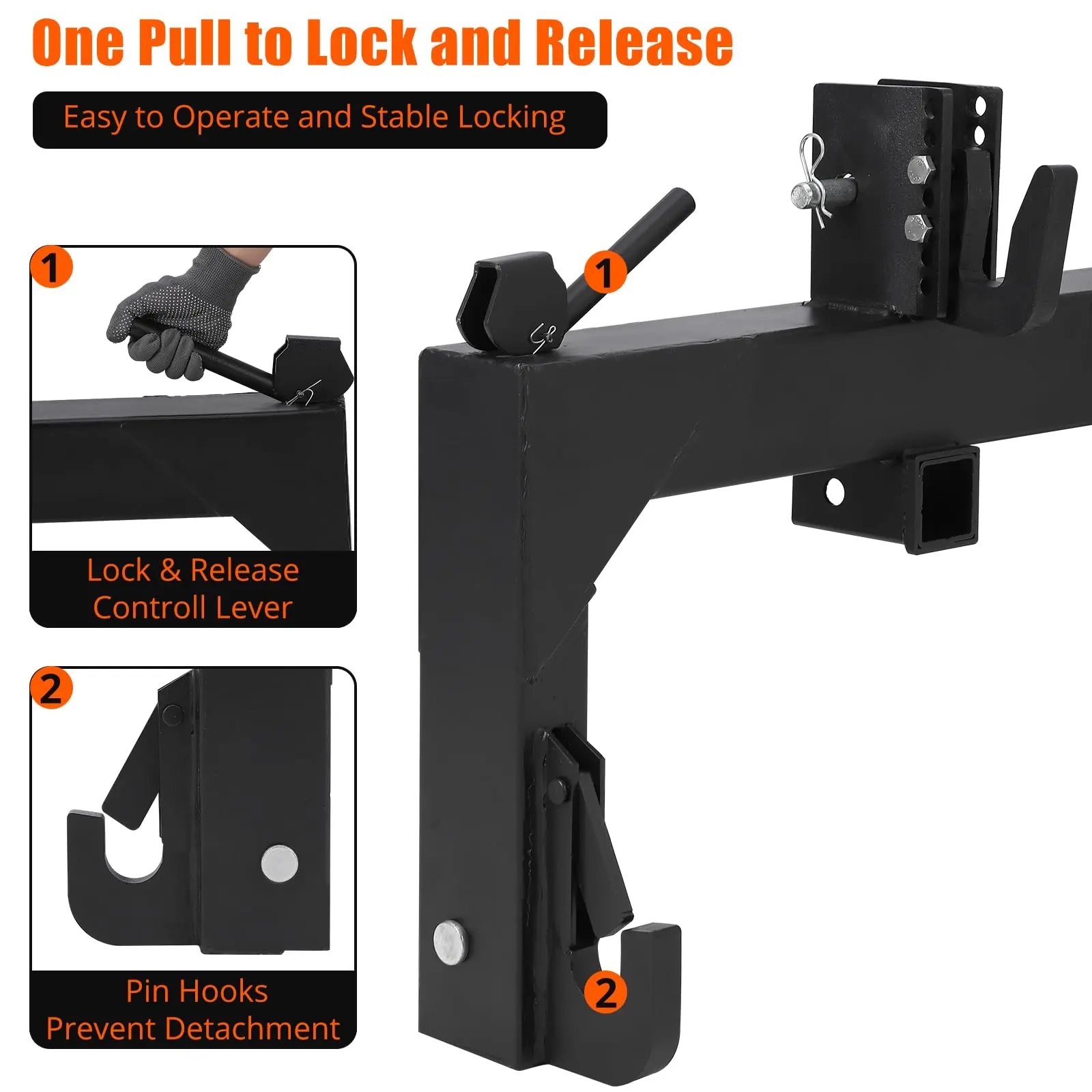 Combining a reinforced triangular structure with an easy-to-use pin hook lock and release system, the GARVEE 3 Point Quick Hitch offers both durability and convenience, revolutionizing the way you work with your tractor.