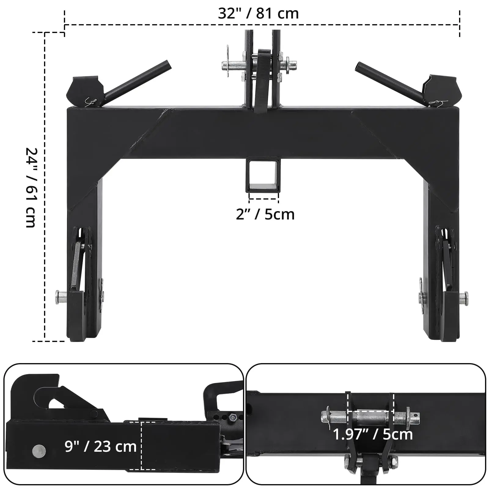 Features 5 levels of adjustment for the top hook, providing flexibility for various implement heights.