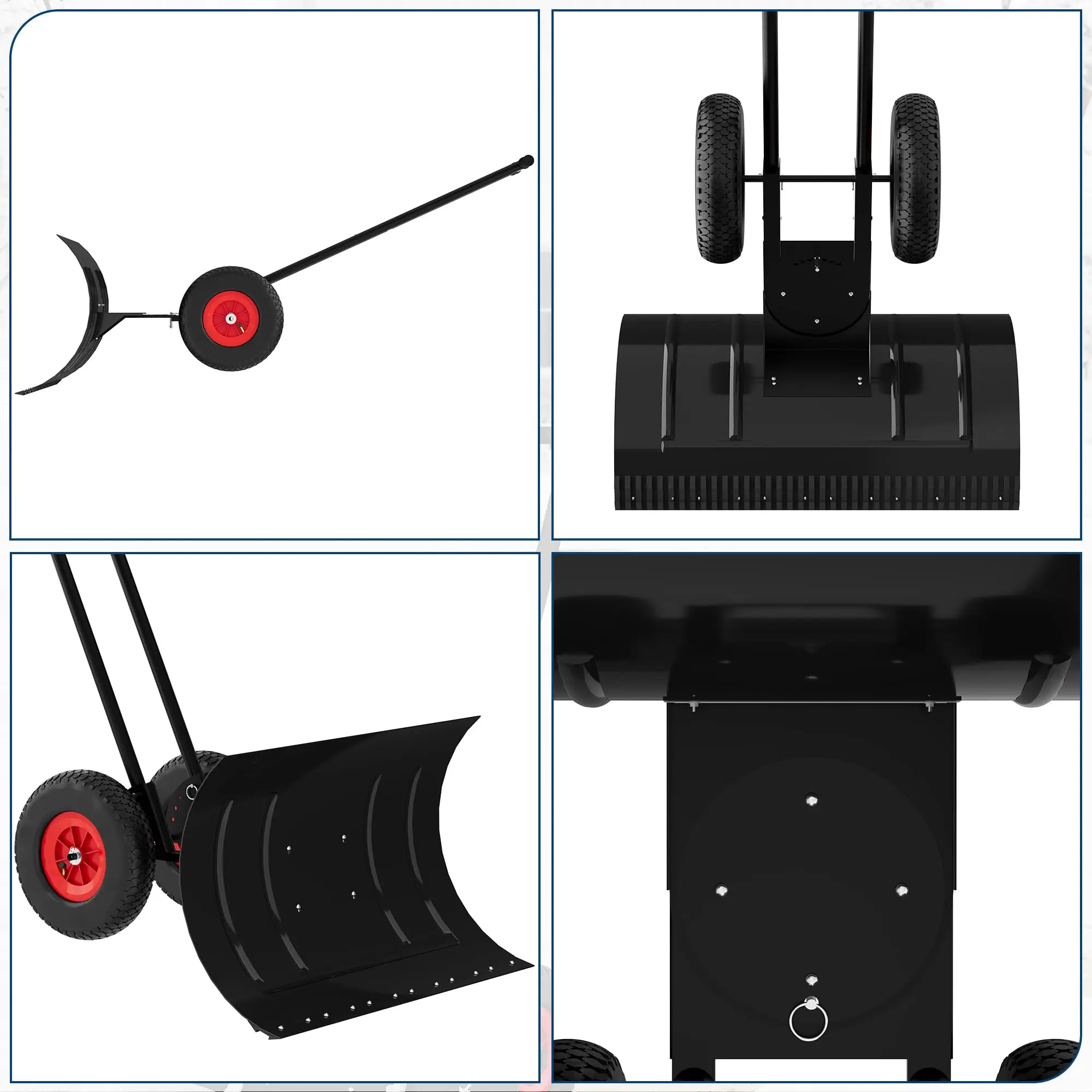 · 5,Easy and Safe Operation: Two 10" anti-slip rubber wheels ensure stable traction on slippery surfaces, preventing slips and falls. The balanced design allows for smooth pushing with minimal effort, making snow removal safer and more convenient for everyone. Enjoy a stress-free shoveling experience!