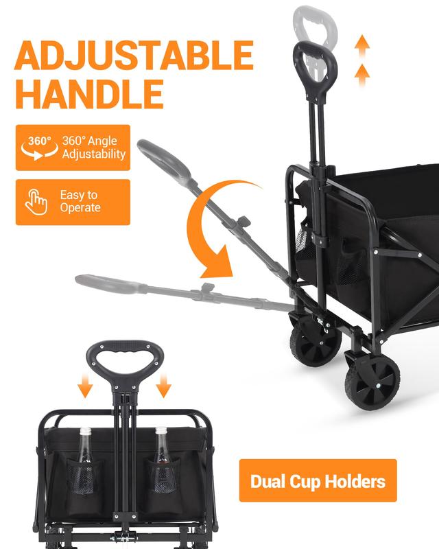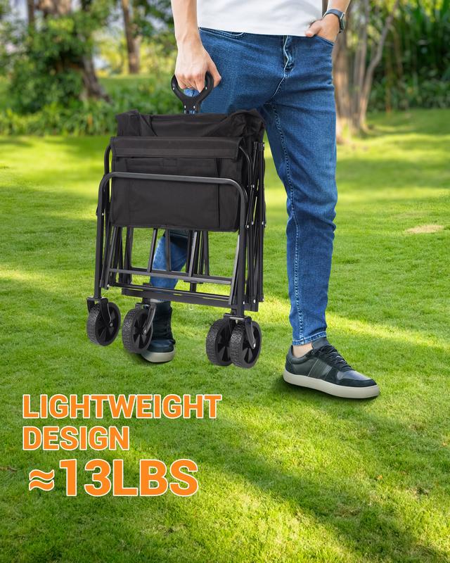 · 🔥【Simple Assembly】Our foldable wagon cart with wheels comes fully assembled and is ready for use. When not in use, it can be folded compactly within seconds for easy storage or transportation.Whether you're heading to the beach, park, or market, this cart simplifies your outings.