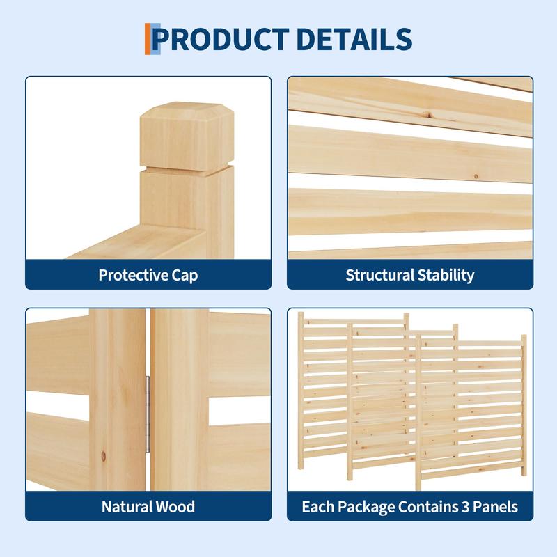 · 5. Quick Setup & Low Maintenance: Pre-assembled panels (or easy DIY assembly) include all hardware and instructions for hassle-free installation. The weather-treated wood requires minimal upkeep-simply wipe clean or customize with paint/stain to match your décor. No special tools or permanent modifications needed!