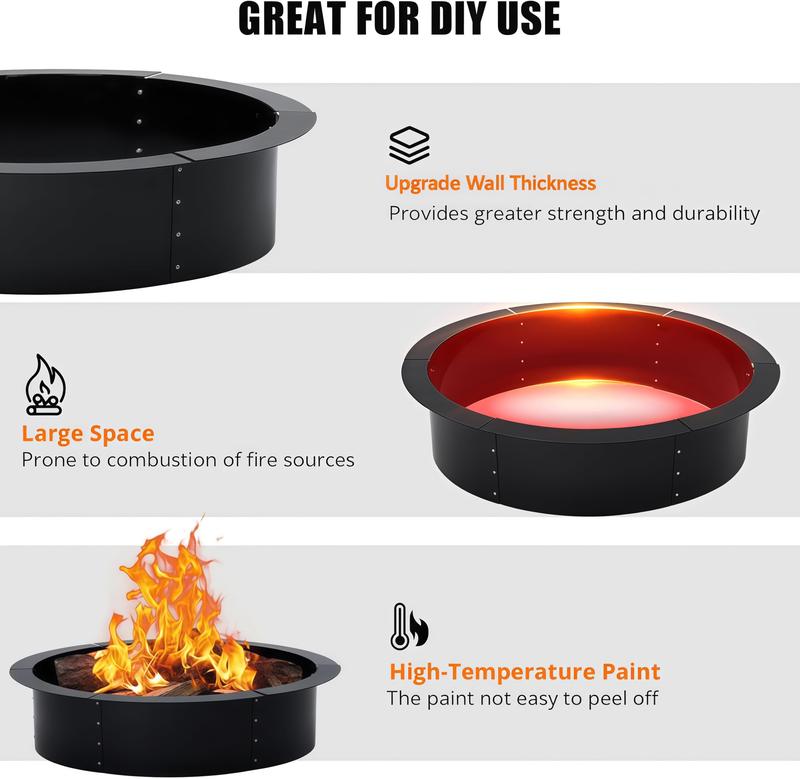 · Easy Assembly Design: The 36-inch smokeless fire pit ring features 8 iron sheets that seamlessly assemble for quick and hassle-free setup, perfect for DIY outdoor projects.