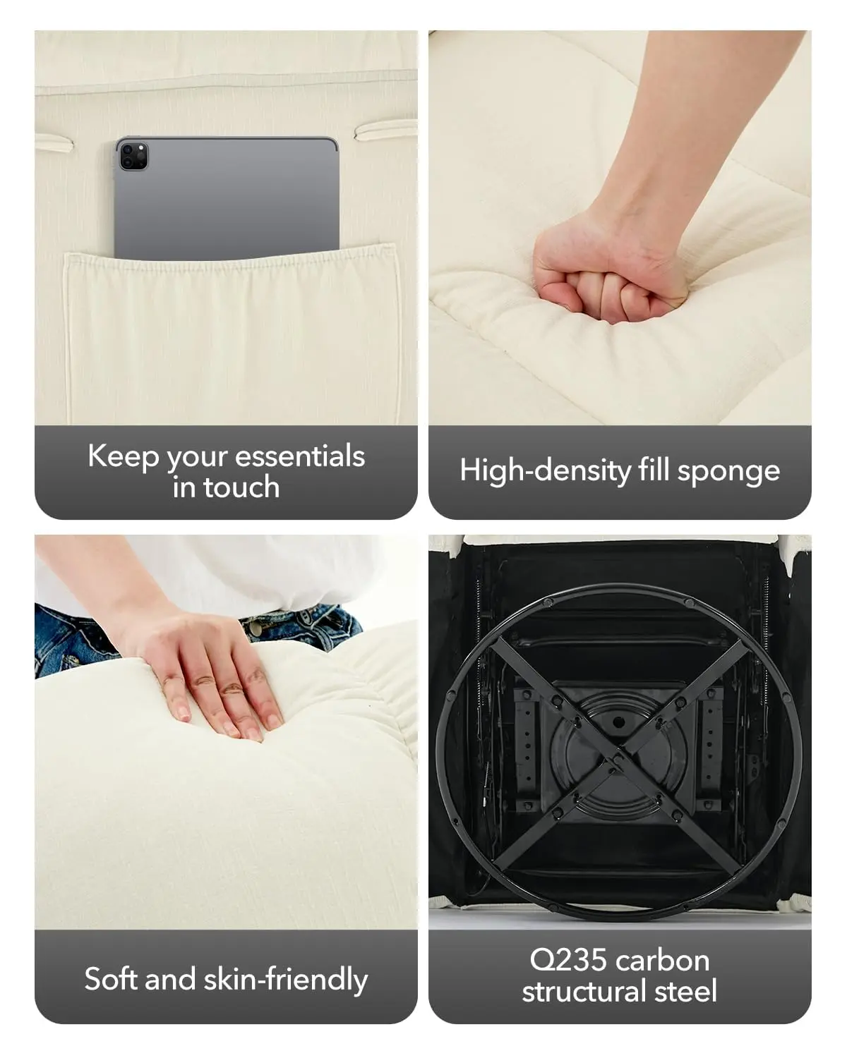 · Plush & Durable Chenille Upholstery: Wrapped in thick, tear-resistant chenille, this upholstered rocking chair offers softness and lasting durability. The breathable fabric provides year-round comfort, while handy side pockets keep essentials close for busy parents or book lovers