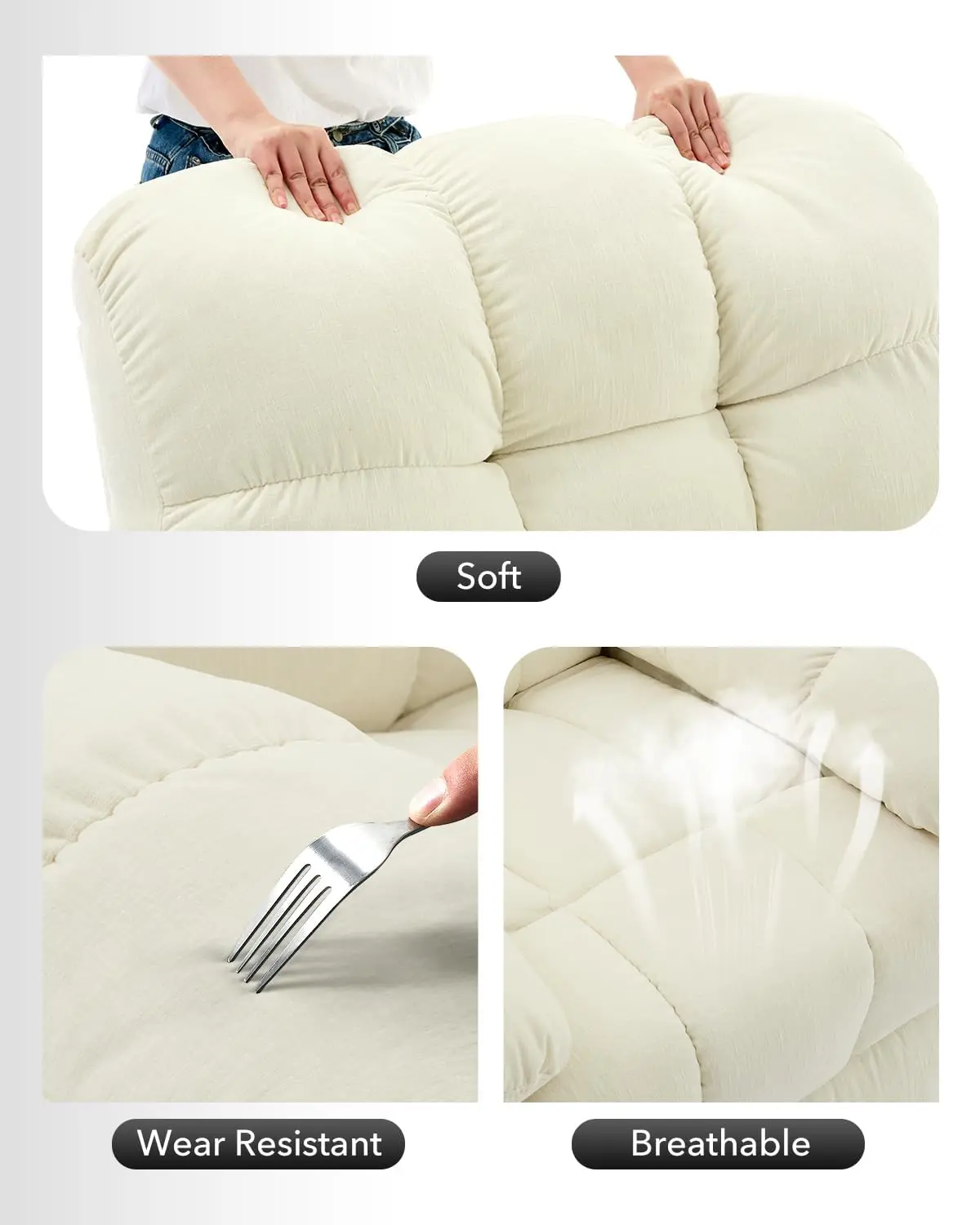 · Sturdy Steel Frame & Space-Saving Design: Built on a heavy-duty steel frame that supports up to 300 LBS, this recliner rocking chair ensures stability during every movement. The L-shaped design fits perfectly in small spaces, apartments, or corners
