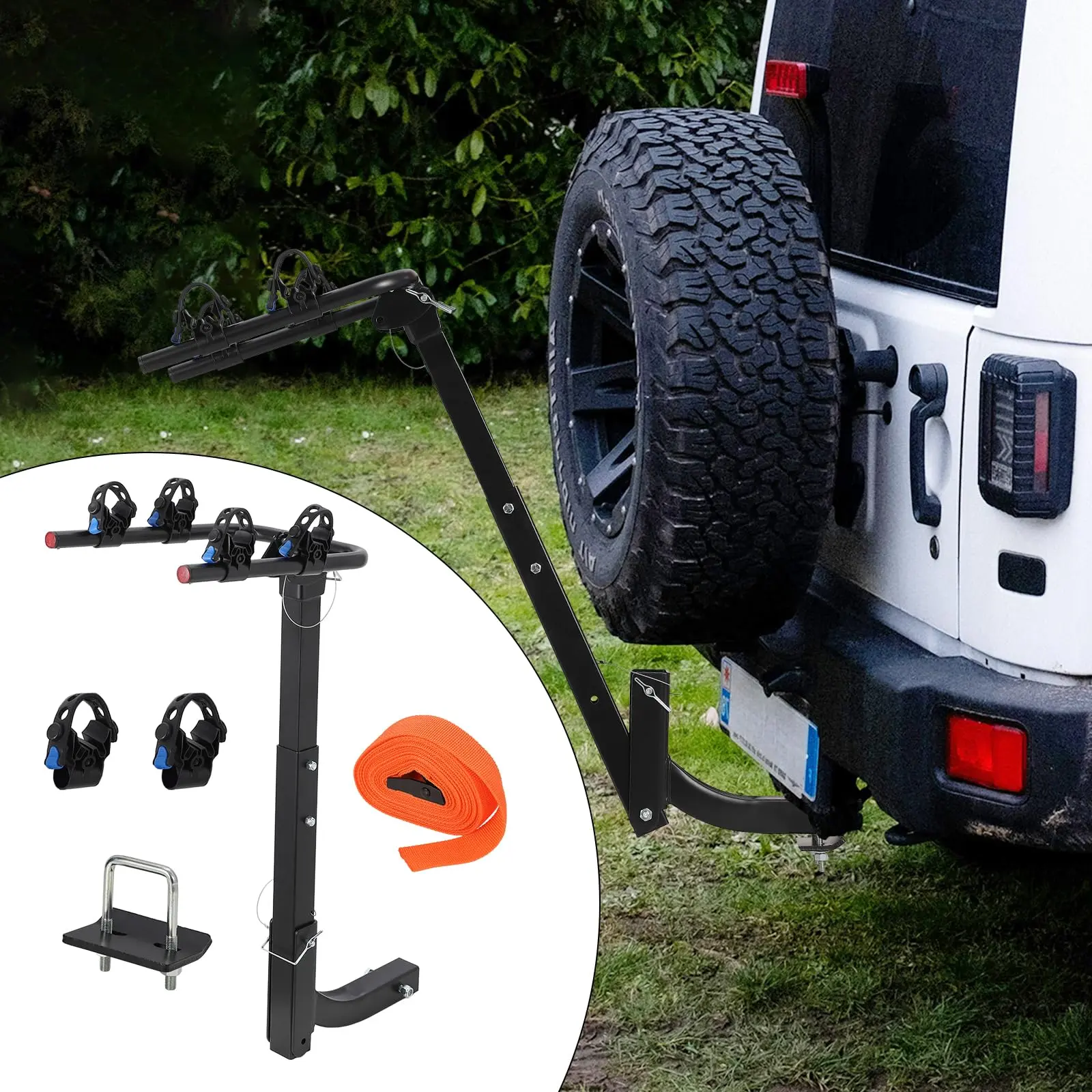 · SAFETY & STABLE AND RELIABLE:Our car hitch bike racks come with hitch tightener,1 piece tie-down straps and two extra rubber straps to ensure that your bikes are mounted securely and safely.Go on easy, sturdy, didn't rattle more than expected. Fine at freeway speeds and the straps are good.