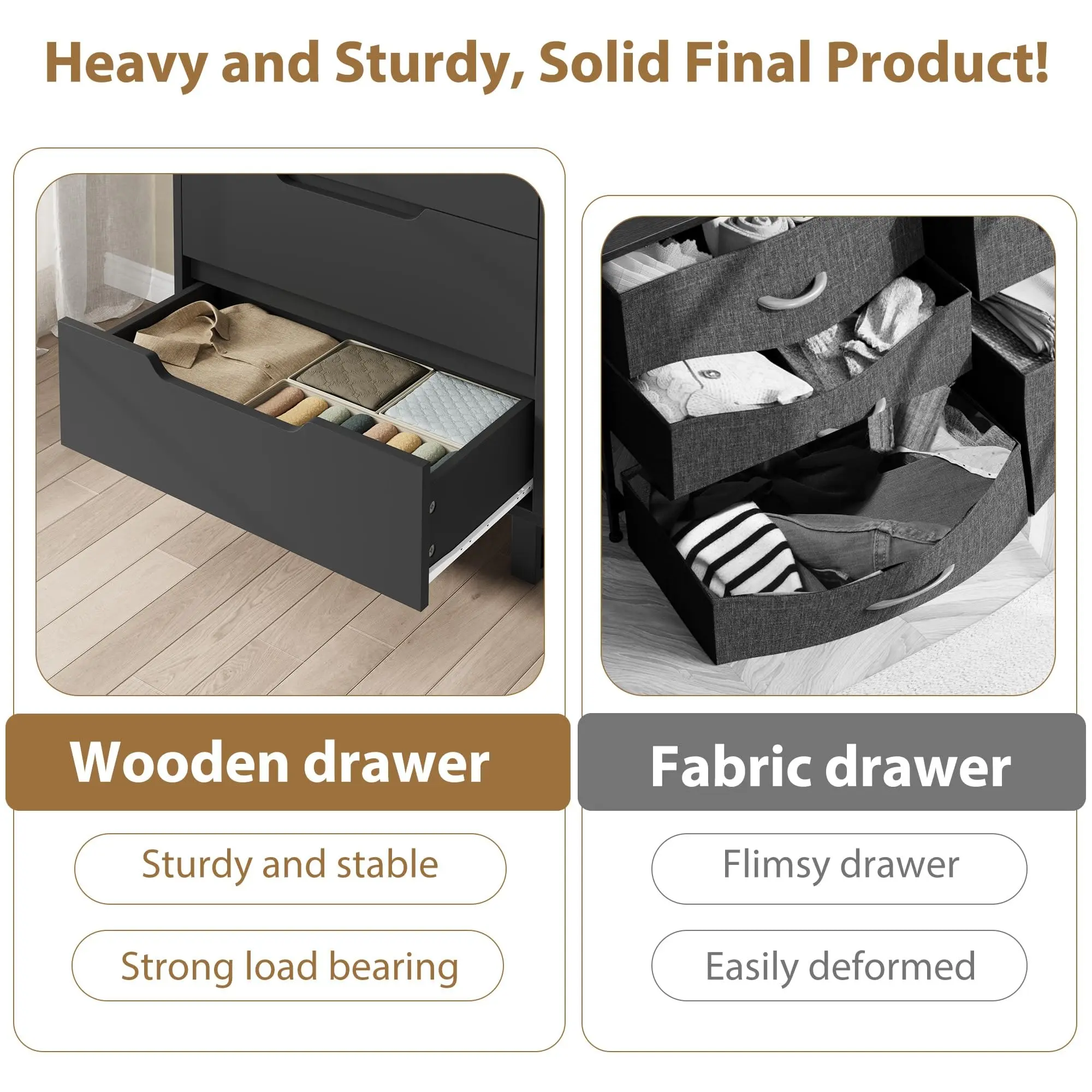 · STURDY STRUCTURE: Crafted from high-quality MDF engineered wood, this dresser is strong and durable. The waterproof 25mm thick tabletop adds stability. Its dimensions (30" L x 15.75" W x 41.5" H) fit well in any room, and it includes an anti-tip device