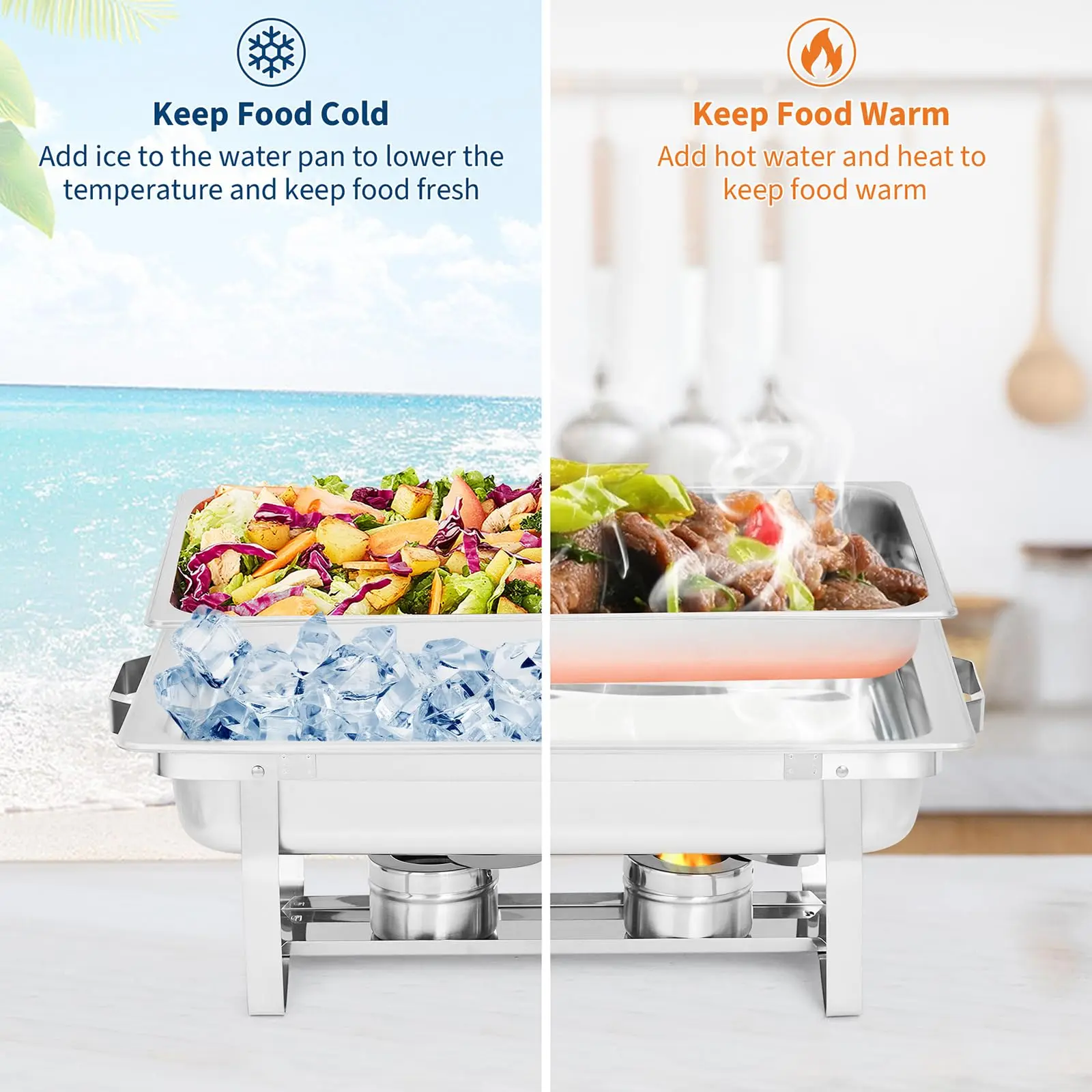 · Commercial-grade steam heat: water-bath plus standard fuel delivers steady, gentle warmth so dishes stay at perfect serving temp for hours.