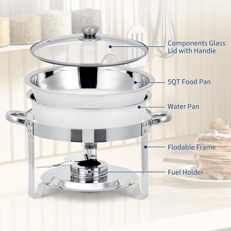· Gentle Even Heating: Water pan heating and fuel holders provide consistent warmth to keep food at serving temperatures safely.