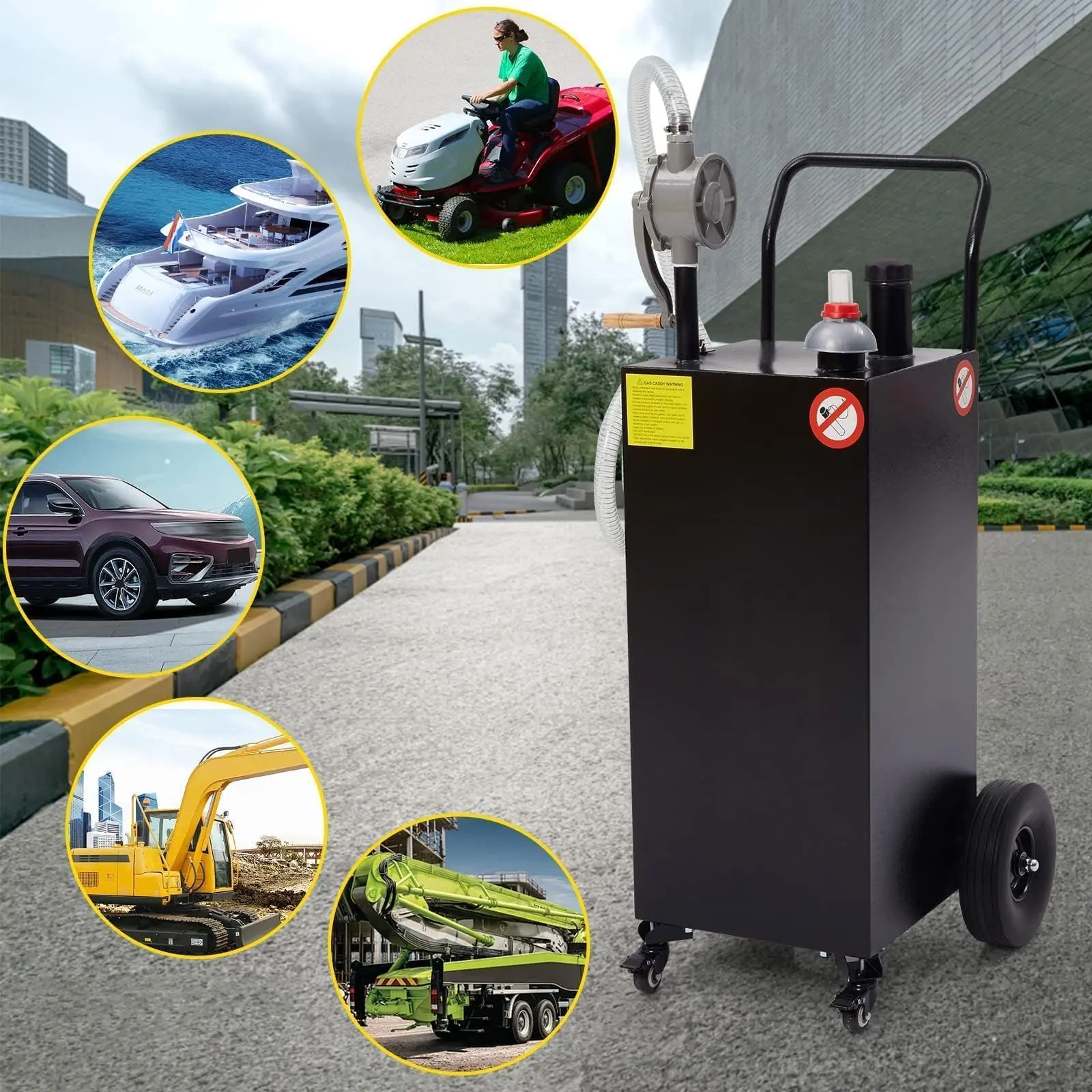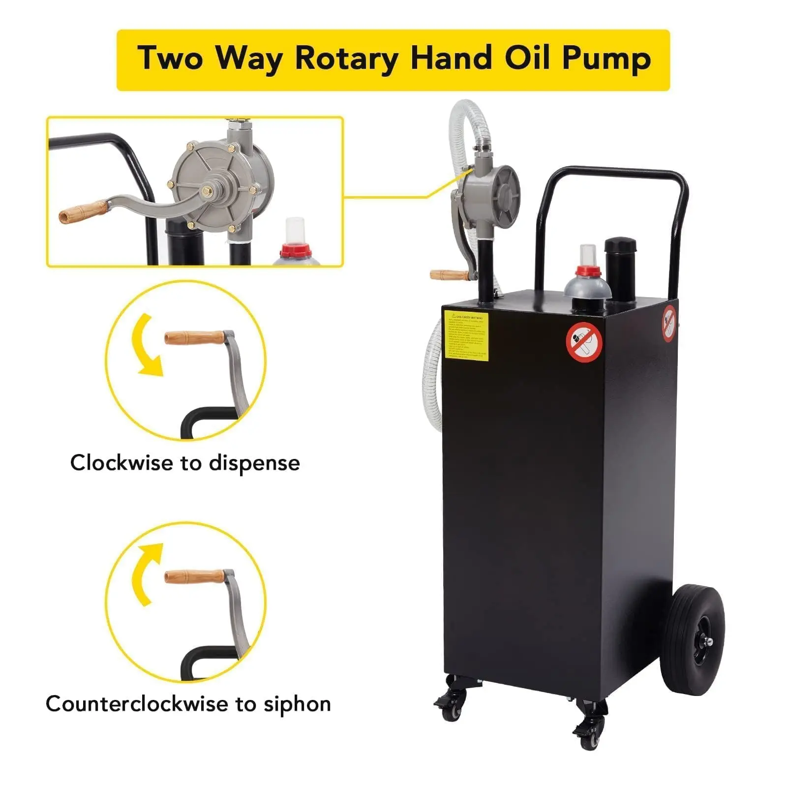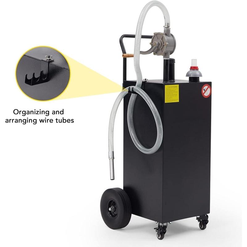 · Effortless Fuel Transfer Anywhere: Equipped with a manual rotary gas transfer pump, this fuel caddy delivers a steady 4 GPM flow rate without requiring electricity. Quickly and safely refuel cars, trucks, ATVs, boats, tractors, generators, and more—perfect for field work or emergency situations.