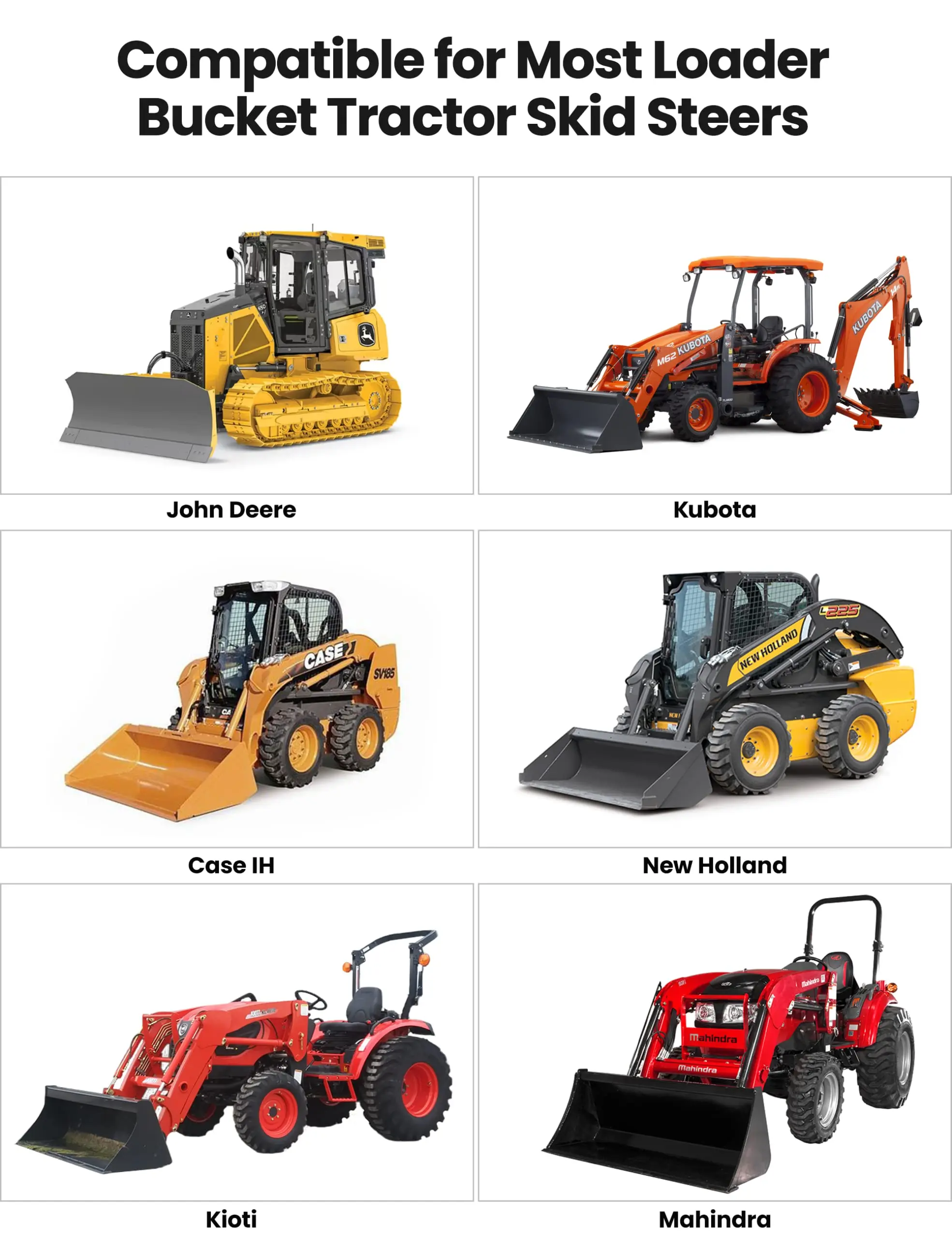 · Universal Compatibility: Designed for seamless integration with mainstream tractors like John Deere and Kubota, featuring a 3-point hitch, these pallet forks transform your skid steer into a versatile workhorse. Efficiently tackle a wide range of farm and construction chores within minimal time.