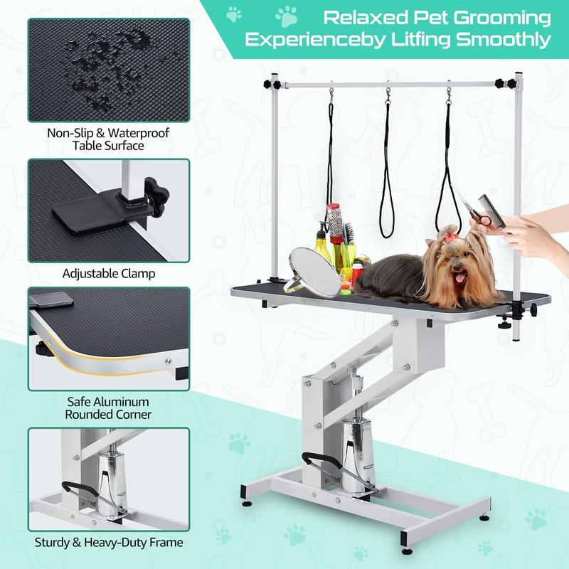 · Z-shaped Hydraulic System: The dog grooming table's Z-lift base provides enhanced stability, preventing wobbling and tipping while allowing you to easily adjust the height for bathing, trimming, drying, and grooming tasks