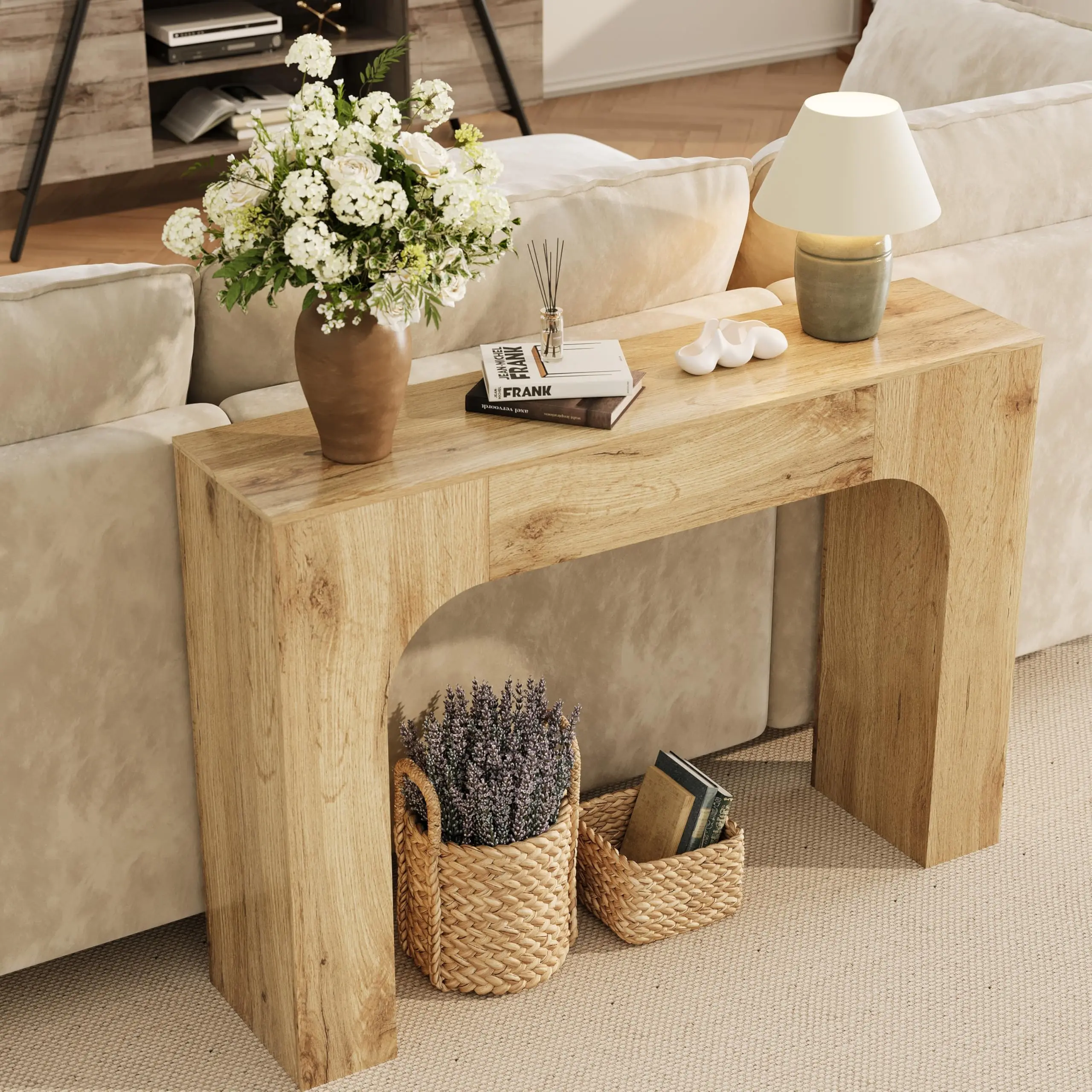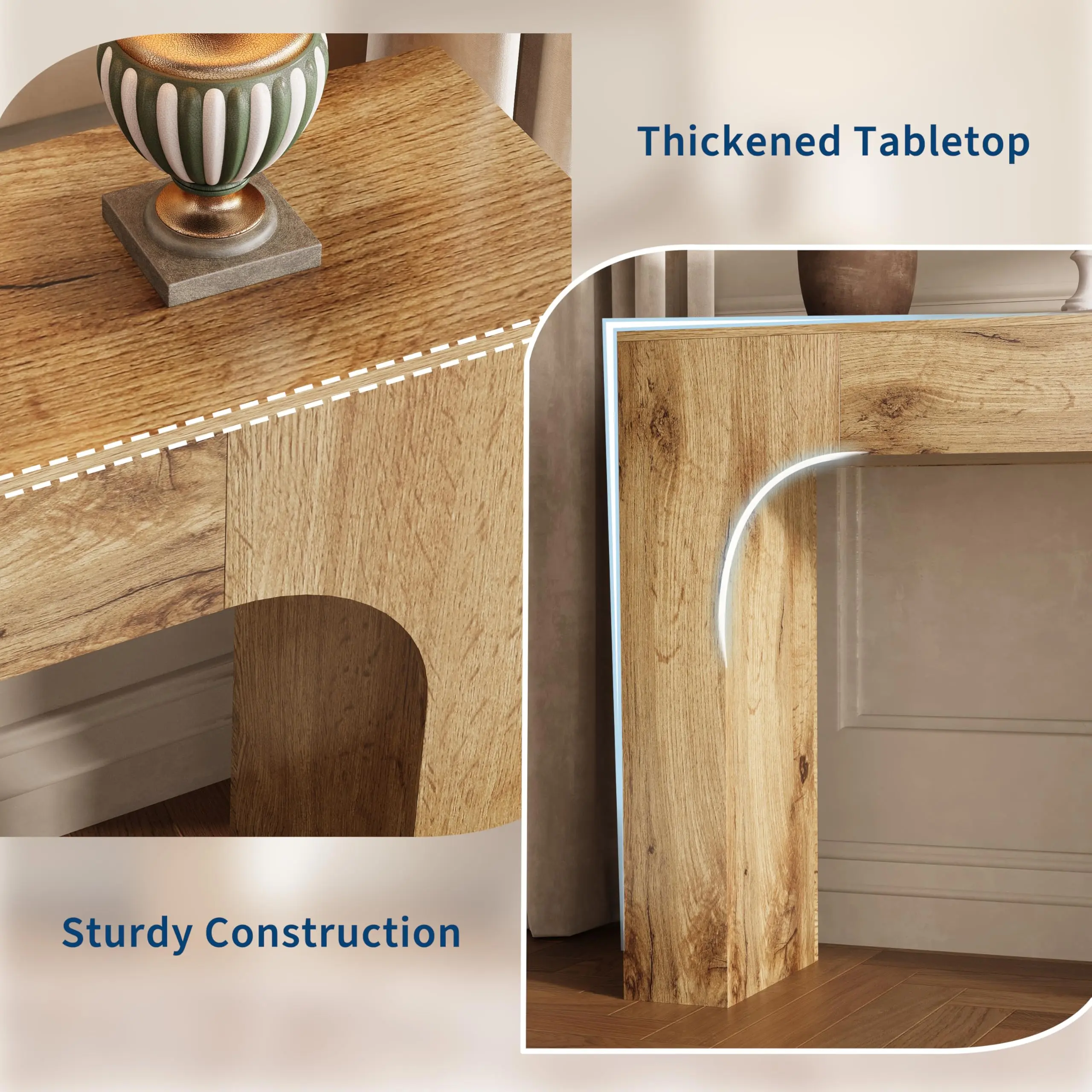 · 【Sturdy Craftsmanship and Material 】Featuring robust wooden legs and an enduring wooden construction, this console sofa table blends farmhouse design with natural elements, ensuring both stability and aesthetic appeal. Its appealing wood-like finish contributes to an authentic aesthetic, enhancing its rustic appeal and solids construction.