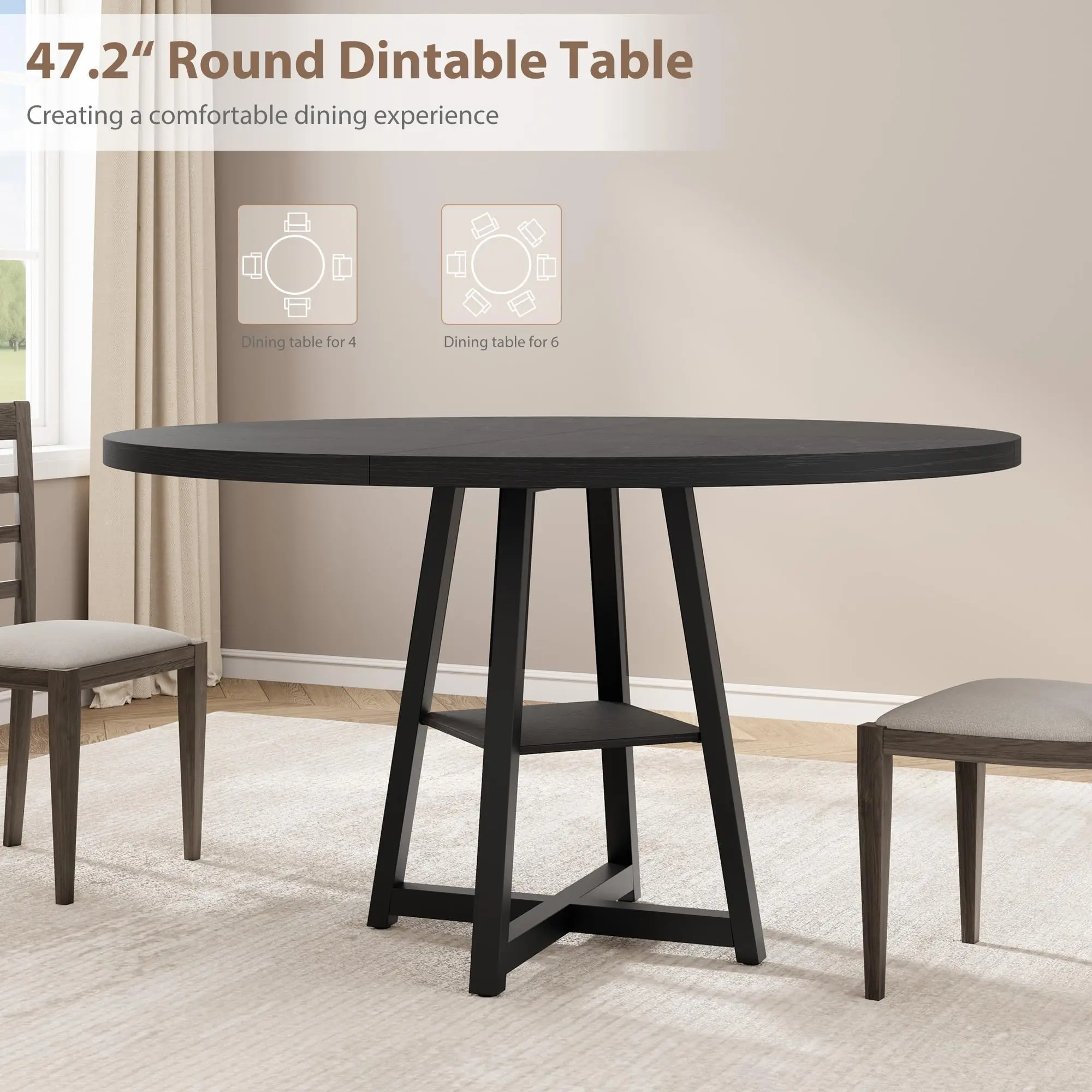 · 【Spacious 4-6 Person Seating】With a 47.24-inch tabletop and 29.53-inch height, this round dinner table comfortably accommodates 4-6 people without crowding, perfect for family meals and small gatherings.
