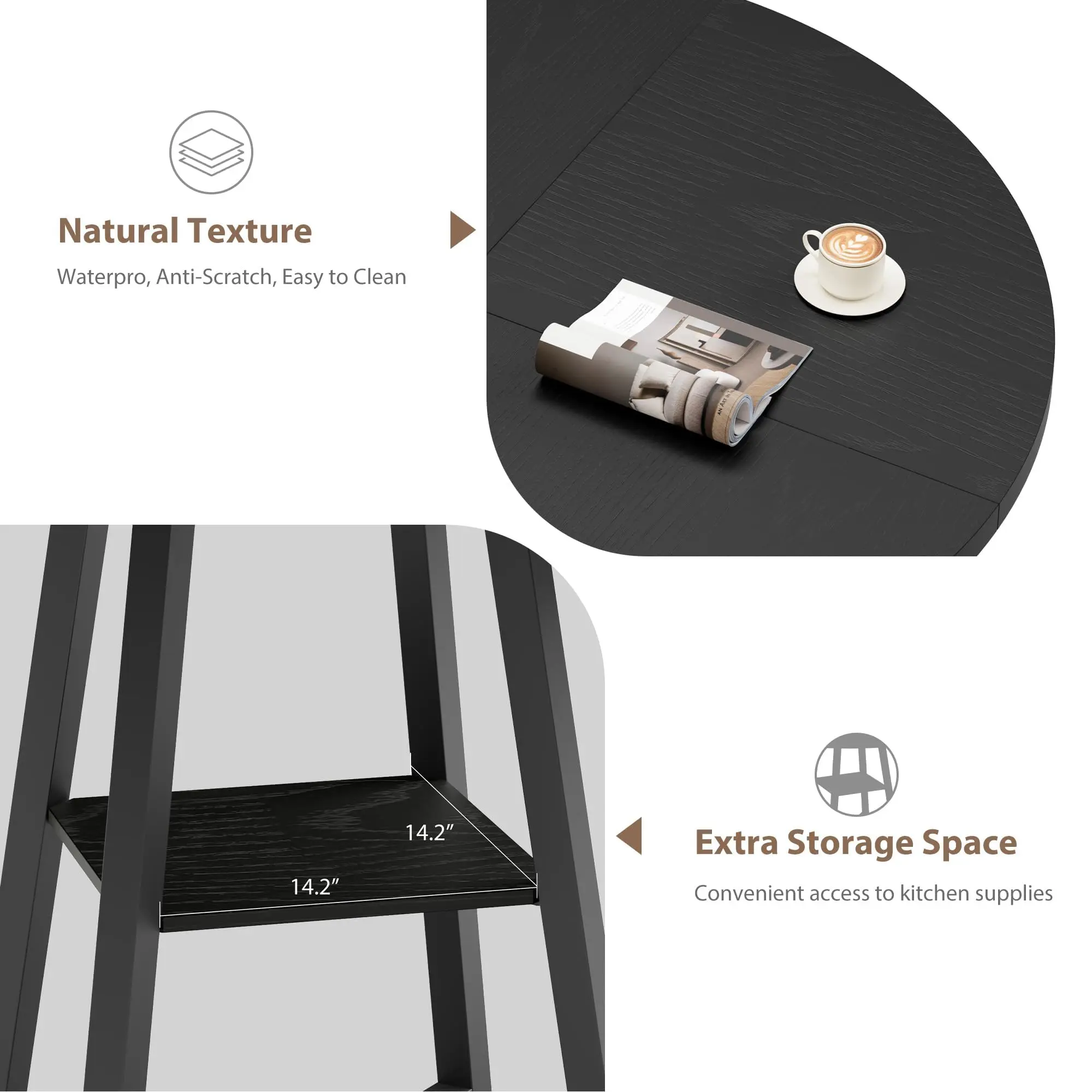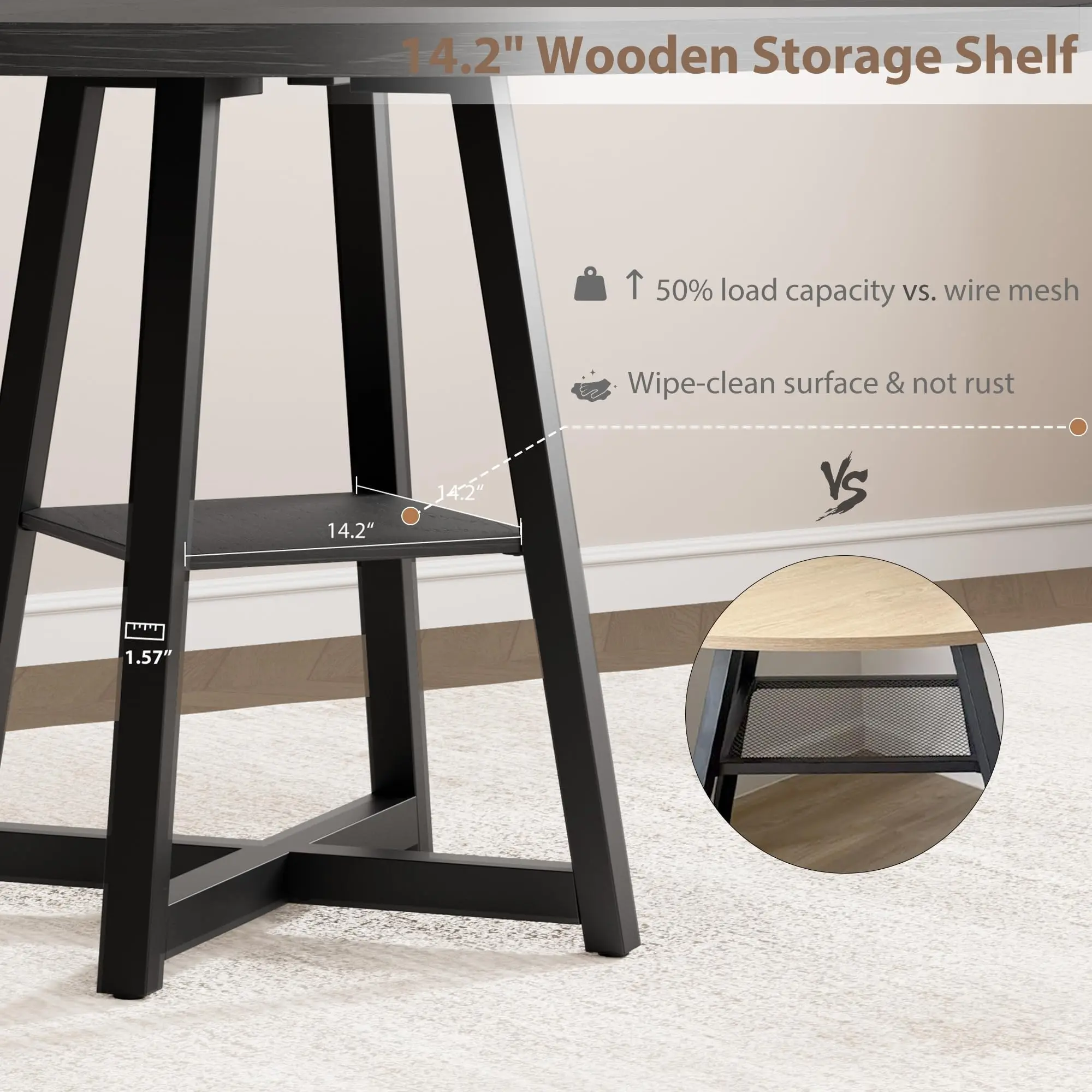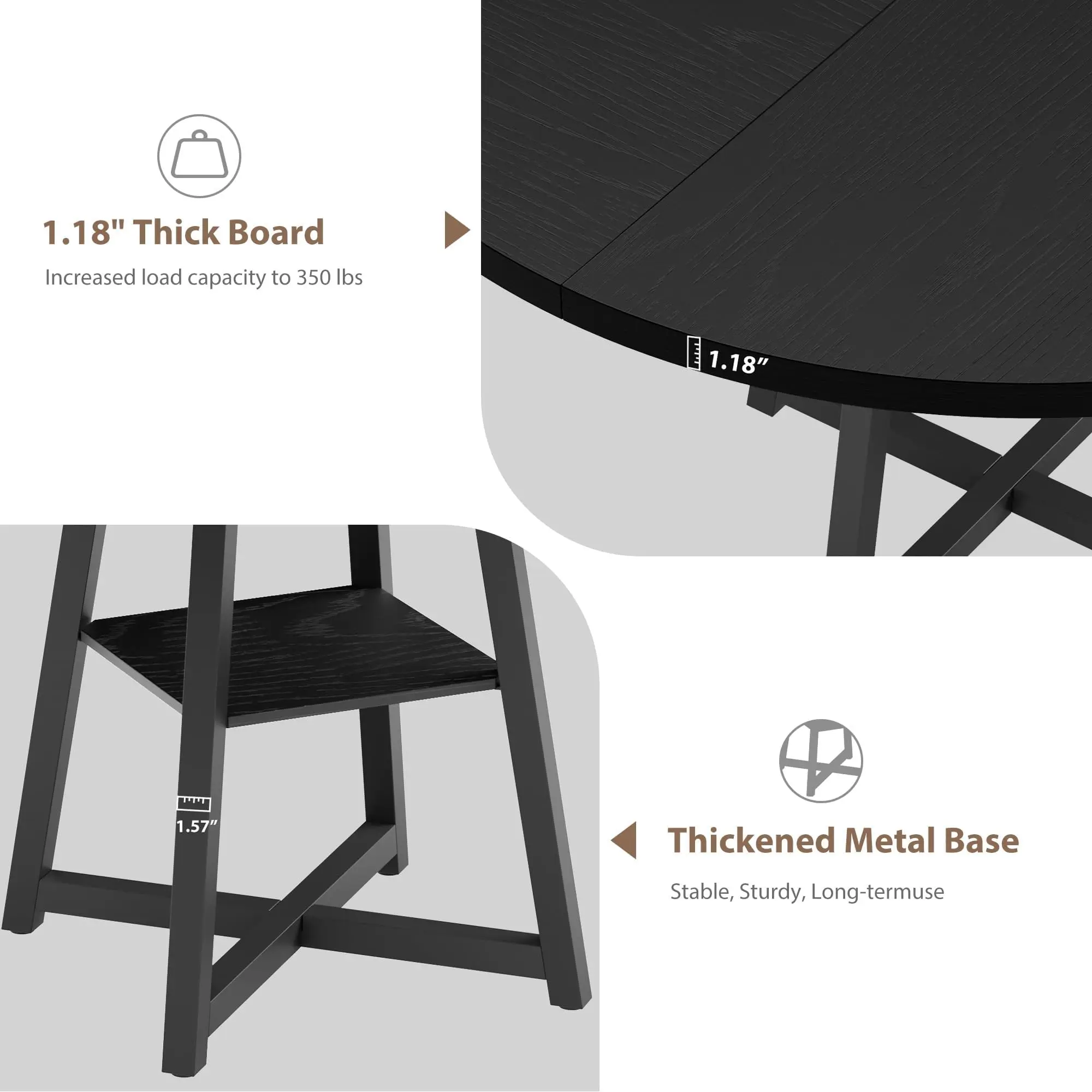 · 【300 lbs Heavy-Duty Capacity】Built with 1.18-inch thick MDF wood top and 1.57-inch metal legs, this kitchen table supports up to 300 pounds. Confidently place dishes, drinks