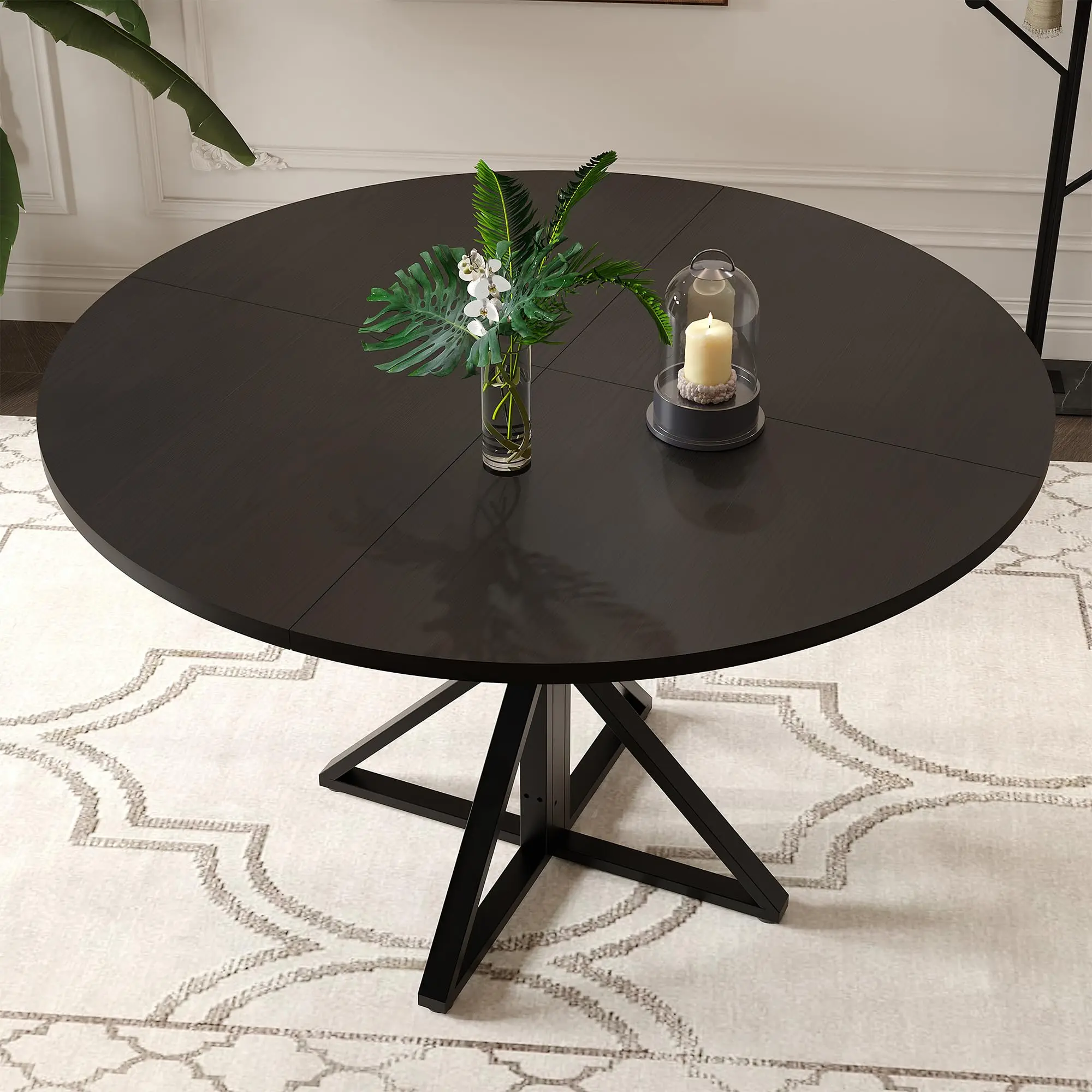 · Stable and Durable: This round kitchen table uses high-quality wood boards and upgraded thickened metal brackets. This dining table provides unparalleled stability. 4 K-shaped metal brackets support each other to ensure that the tabletop is always stable, providing reliable protection for your daily use. Whether it is a sumptuous dinner or daily dining, it can easily cope with it.
