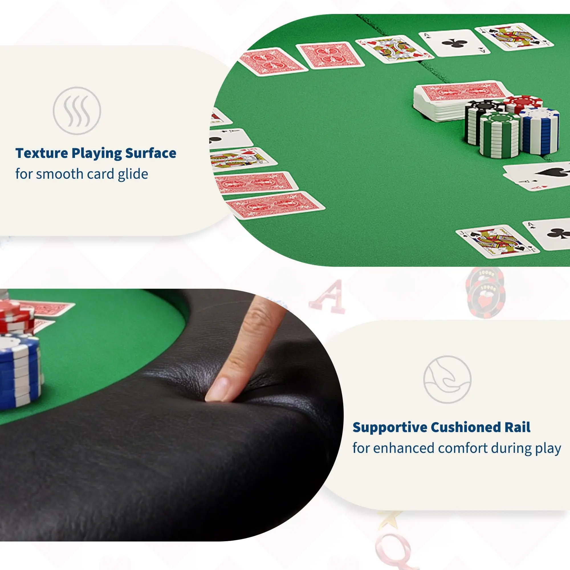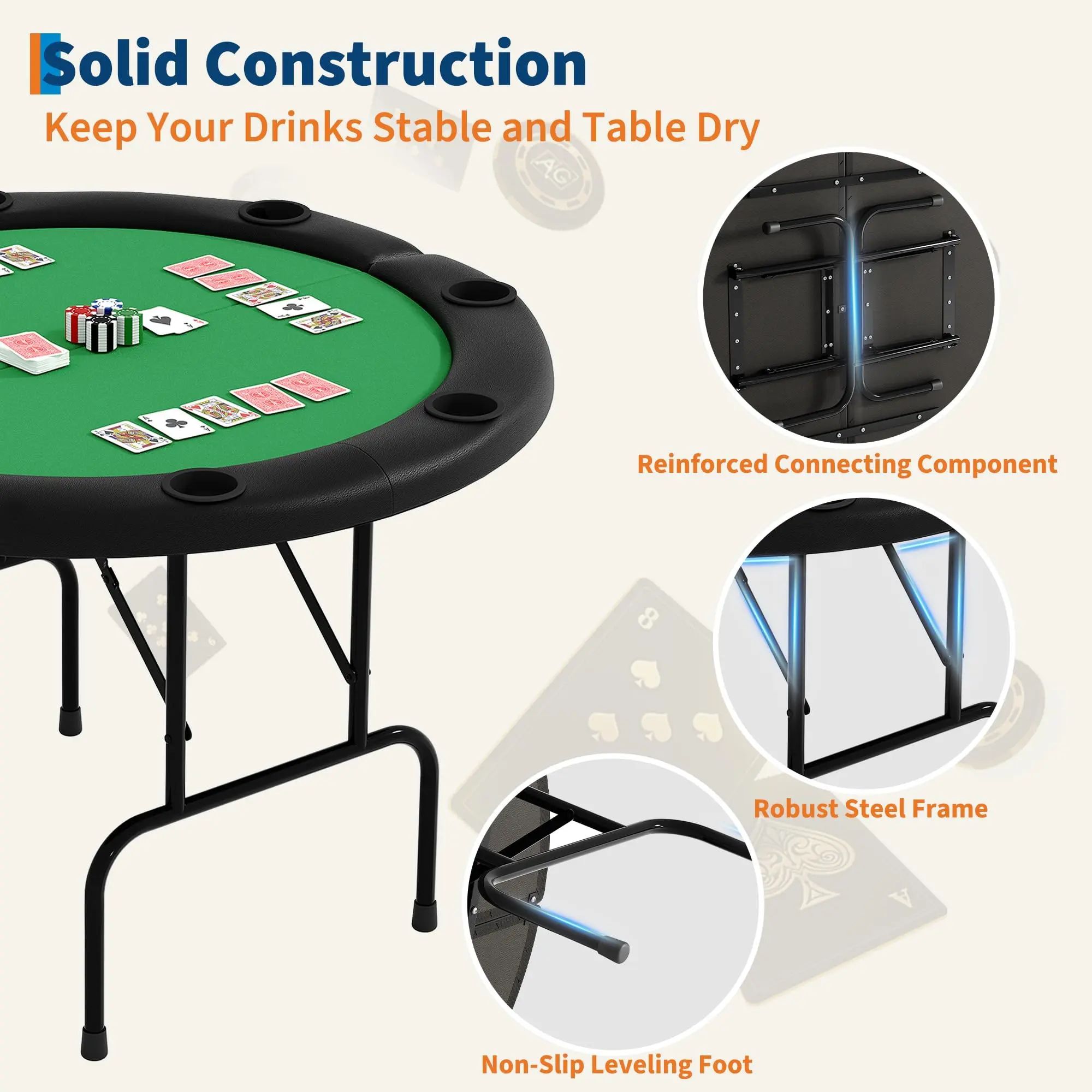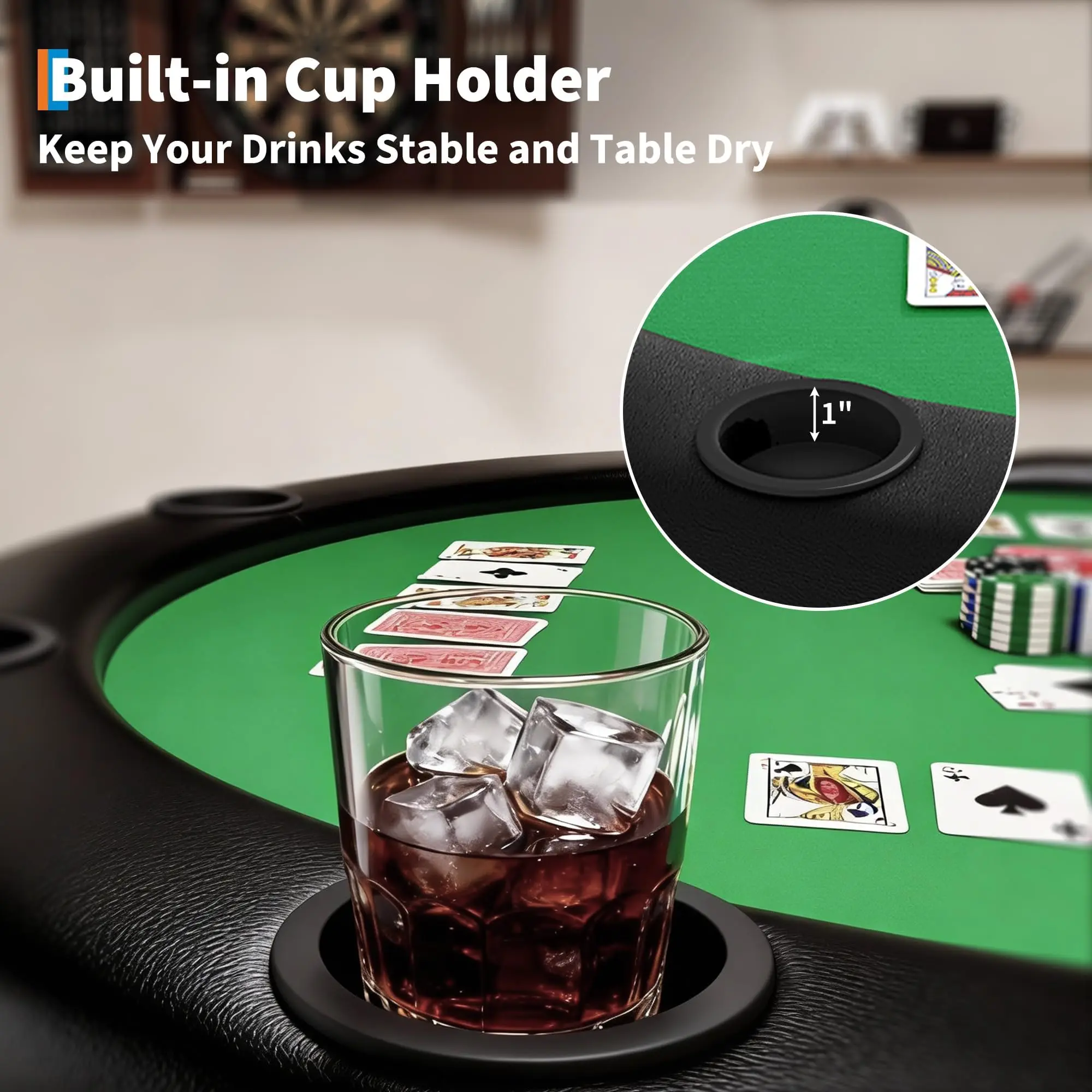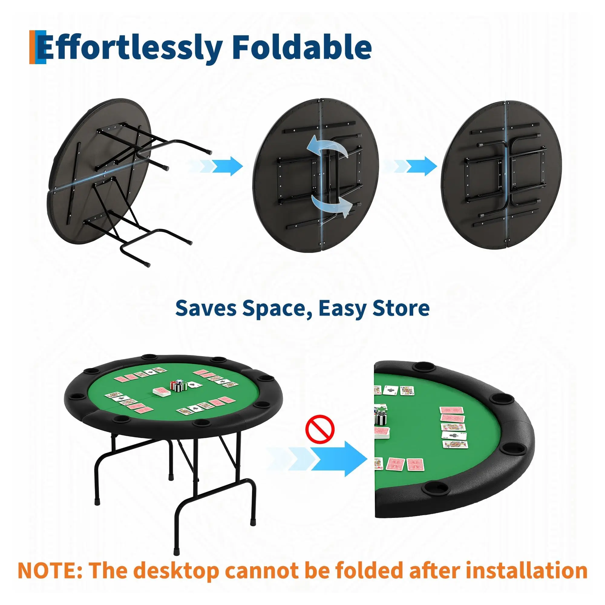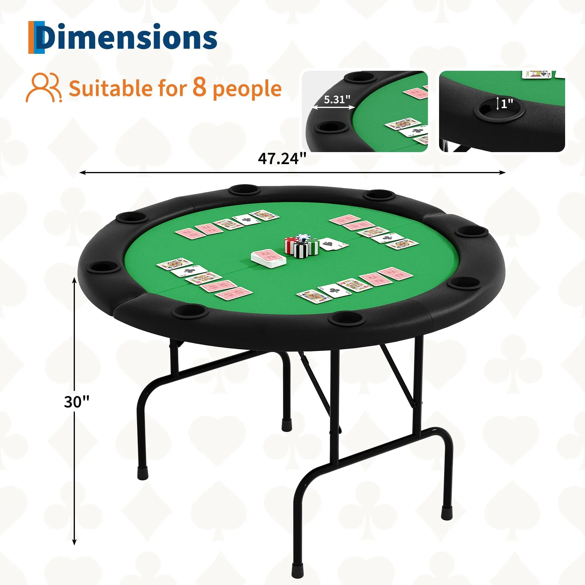 · Professional Casino Experience: Experience the thrill of professional gaming with this poker table. The casino-grade green felt surface ensures smooth card dealing and sliding, while the 47.24'' round design provides ample space for 8 players to enjoy Texas Holdem, Blackjack, and other card games in comfort