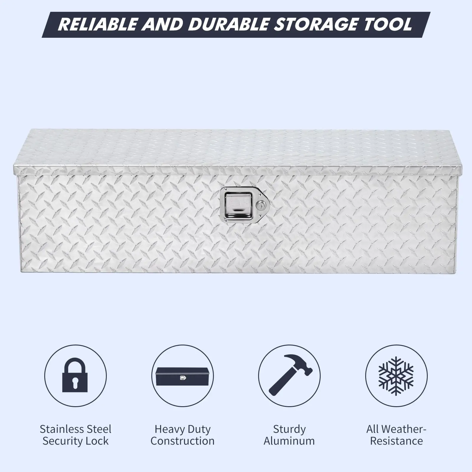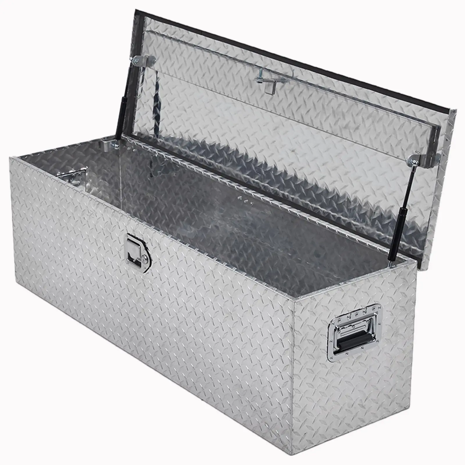 · ALUMINUM TOOL BOX: This all-welded aluminum toolbox is designed to be lightweight and durable, making it easy to carry and store. Overall dimensions of this toolbox include: 48"(L) x 15"(W) x 15"(H).