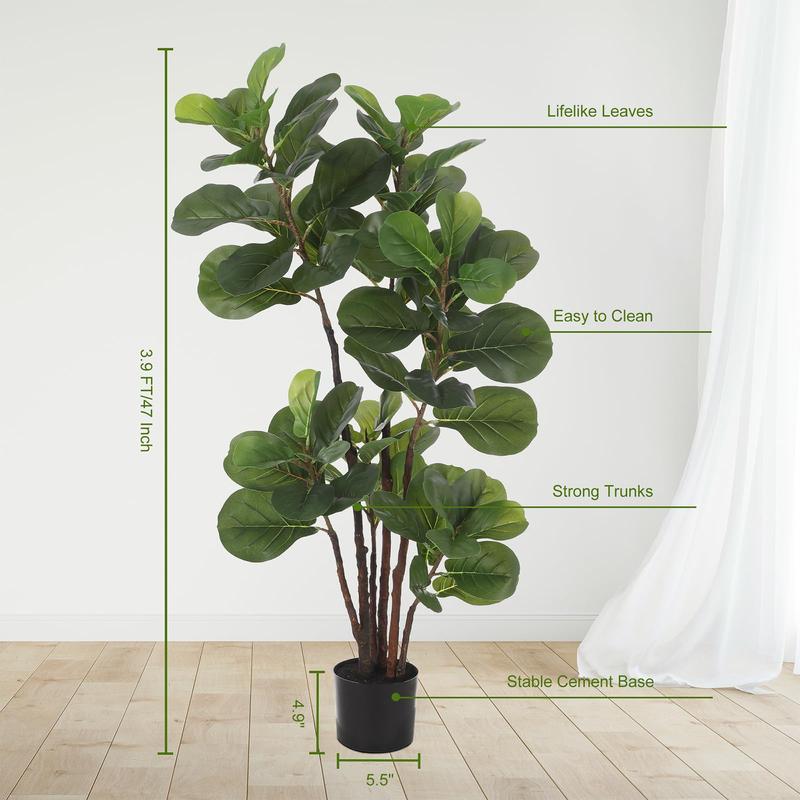 · High-quality Materials: Made from premium materials plastic, silk, and metal wires, our faux fiddle leaf fig tree is built to last. The black pot is crafted from tough PP material and filled with concrete for stability, ensuring the tree stays upright and safe. The pot measures 5.5x4.9 inches, allowing it to blend seamlessly with existing flower pots.