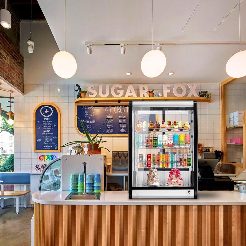 The advanced ventilation cooling system maintains consistent temperature throughout, while the double-layer glass prevents condensation, ensuring your products always look their best.