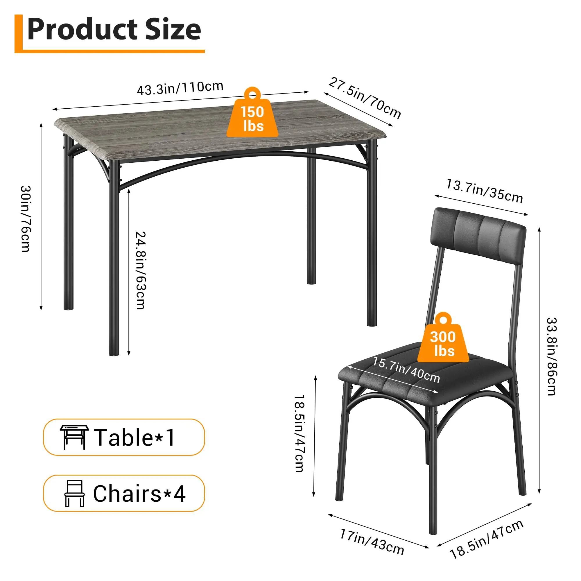 · Sturdy Metal & Wood Construction:Built with a durable steel frame and composite wood/MDF tabletop, this set offers long-lasting stability. The water-resistant surfaces are easy to wipe clean, and each chair supports up to 300 lbs for reliable everyday use.