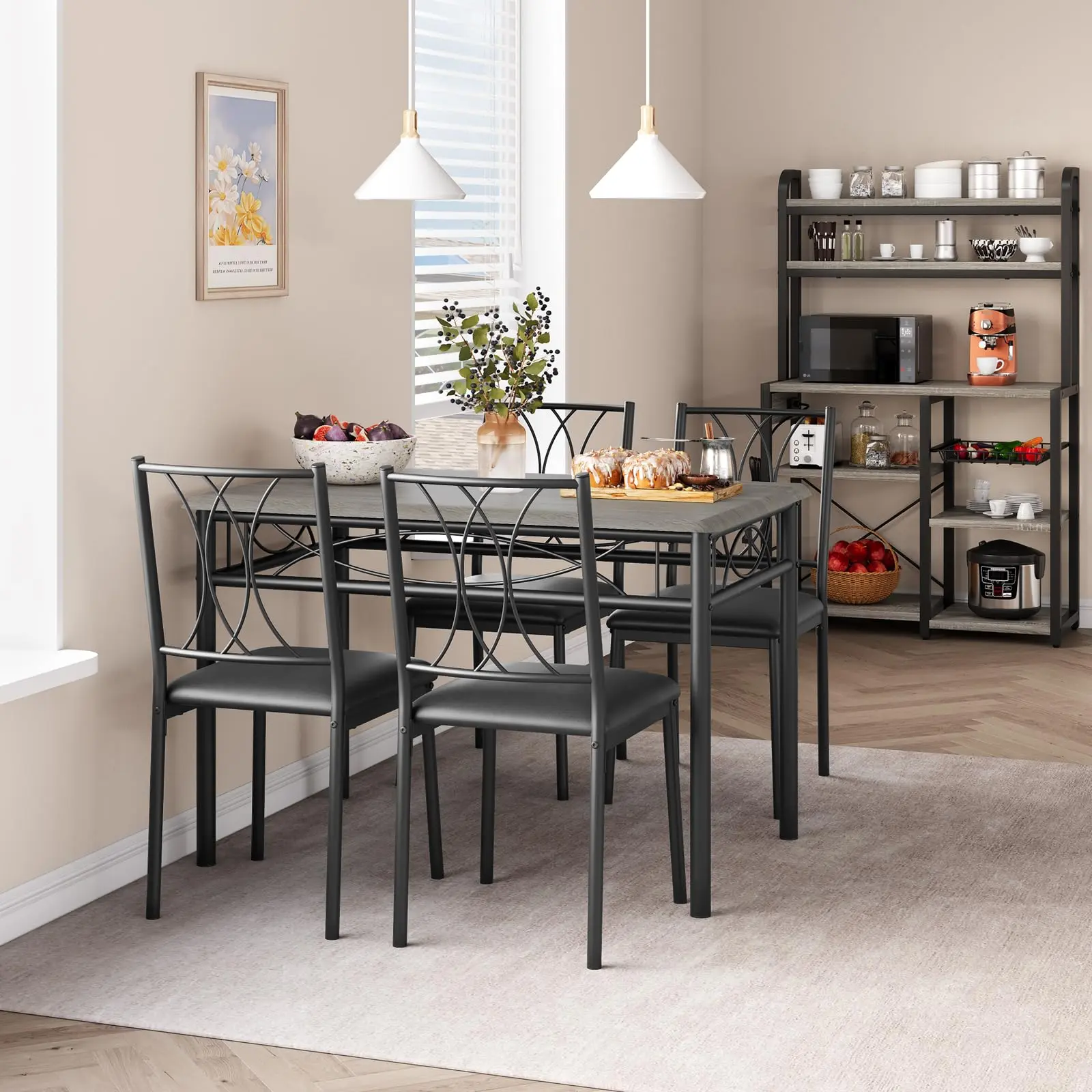 · Space-Saving Design: All four chairs neatly tuck under the table, making it ideal for apartments, condos, kitchens, and small dining rooms.