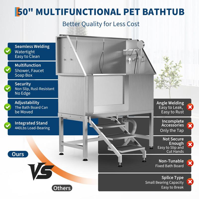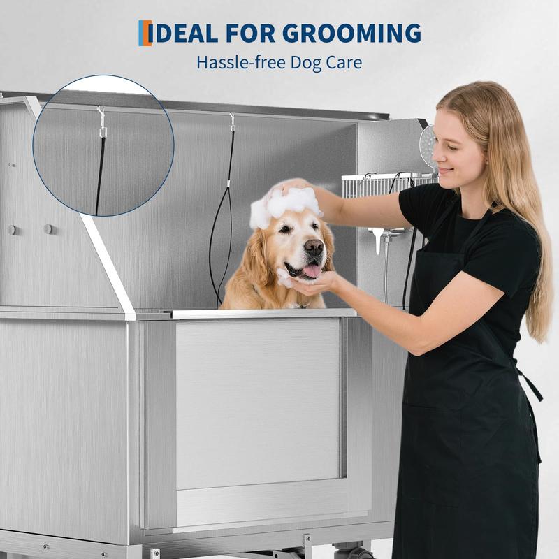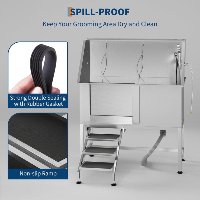 · Splash-Proof Bathing System – Double-sealed design (rubber gasket + 3-sided baffle) minimizes water splashes, keeping your grooming area clean and dry.