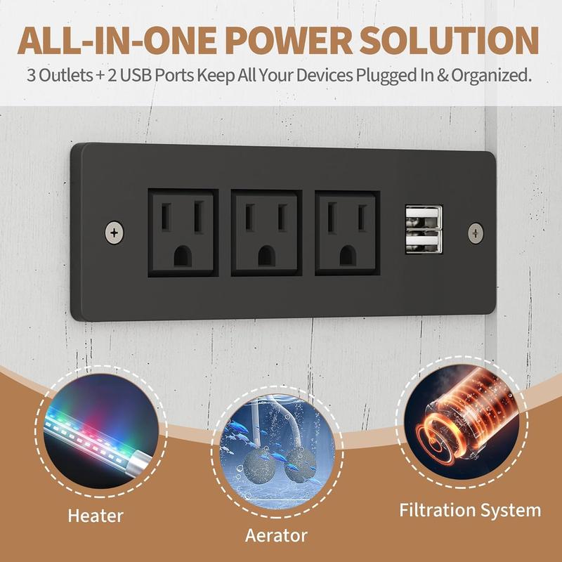 · 【Convenient Built-in Power Station】Equipped with 3 AC outlets and 2 USB ports, the 75 gallon aquarium stand keeps your tank setup tidy and functional—powering lights, filters, and heaters all in one place without messy cords