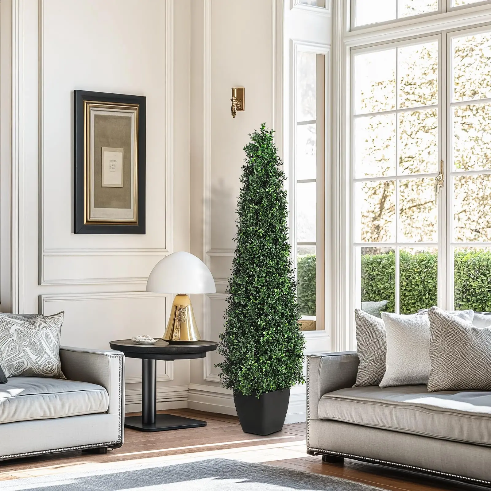 · Lifelike & Versatile Décor – These artificial boxwood topiary trees feature ultra-realistic details, perfect for enhancing both indoor and outdoor spaces. Ideal for front porches, gardens, balconies, patios, gazebos, offices, and living rooms. No sunlight or watering needed—evergreen beauty year-round!